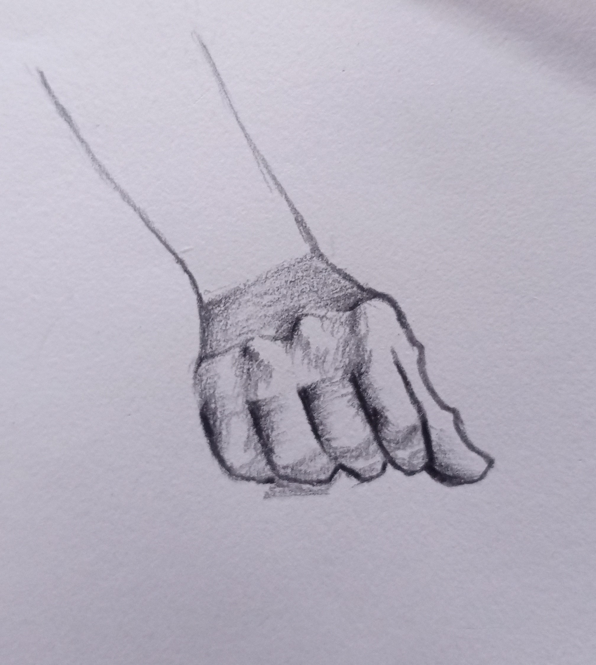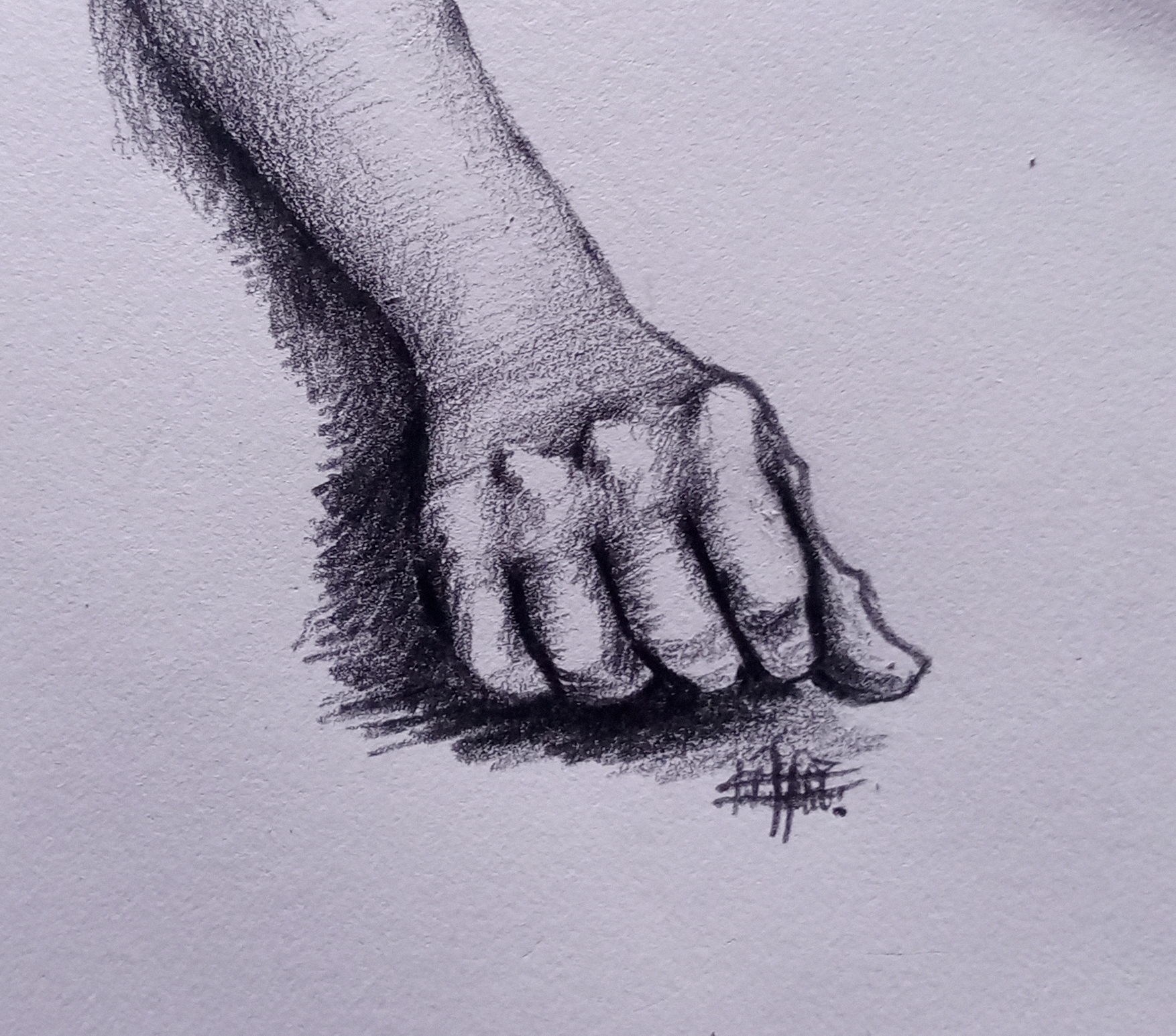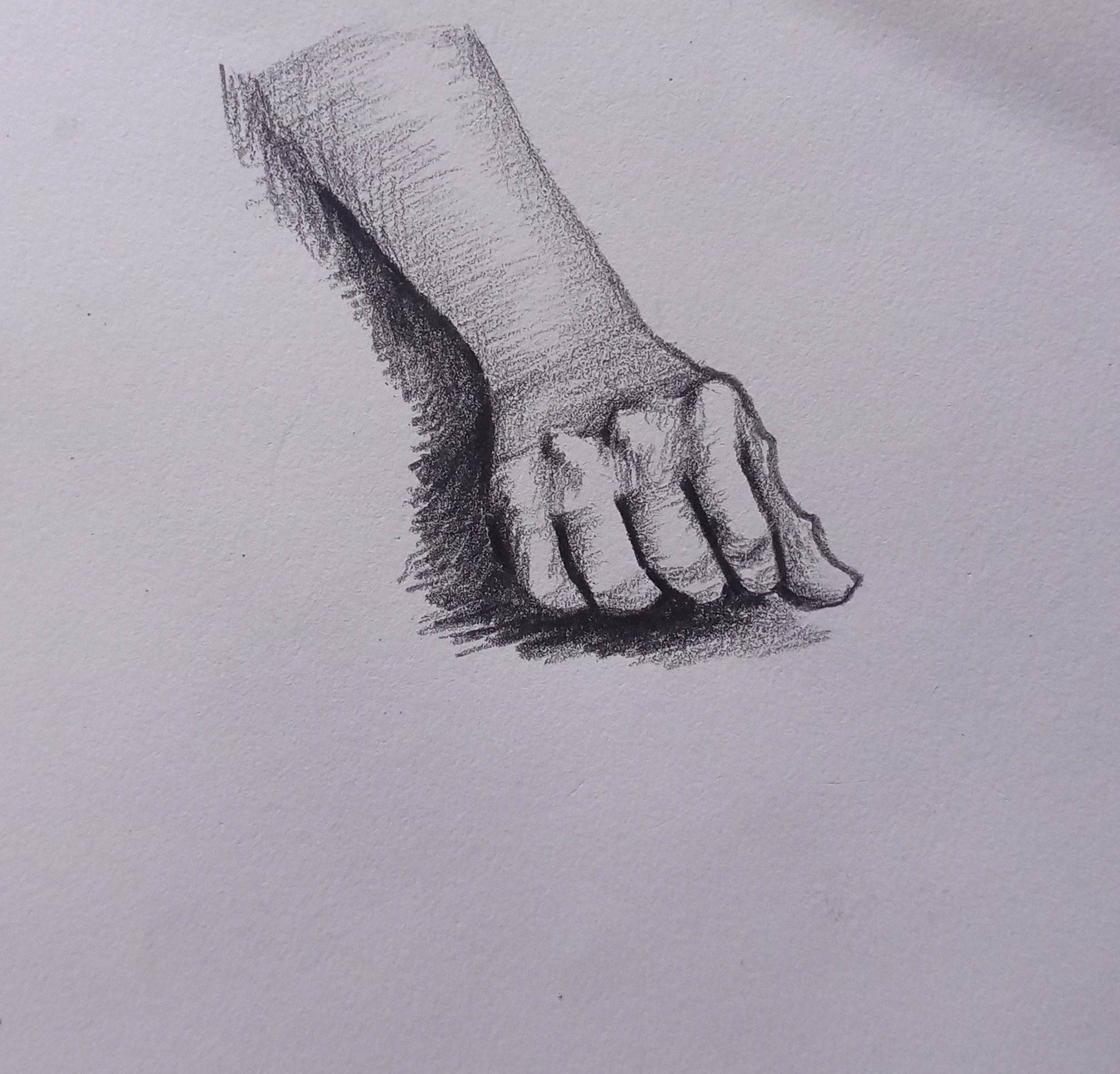 In this drawing, I sought to capture not just the form of the hand, but the quiet weight it carries when clenched- somewhere between tension and resolve. Every stroke of graphite was meant echo both strength and fragility: the soft curves of flesh contrasted against the hard shadows of determination. The downward pressure of the fist speaks of unspoken emotions-anger held back, resilience forged in silence, or simply the grounding of one's presence in a moment of stillness. It is not just a hand, but a statement of being silent, firm and unyielding.