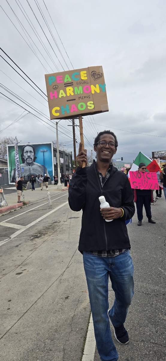 PEACE = HARMONY - CHAOScaliboycalwayne (49)in #art • 11 months ago Peace Equal Harmony Minus Chaos Marching in March at the annual Cesar Chavez march with my sisters and brothers against injustice. This sign stole the show, for its words and awesome design. #protest #politics #unityisstrength #onelove
