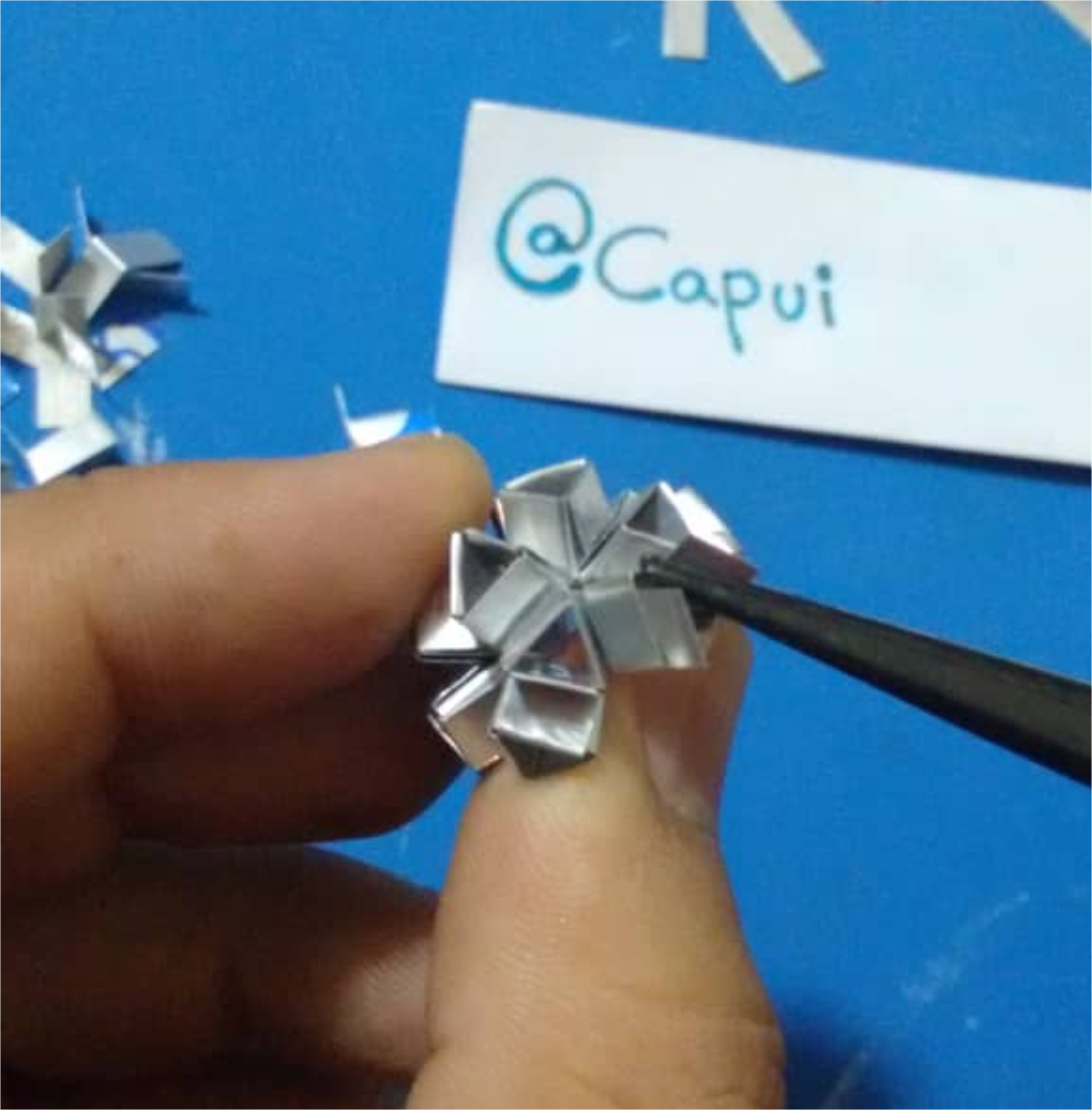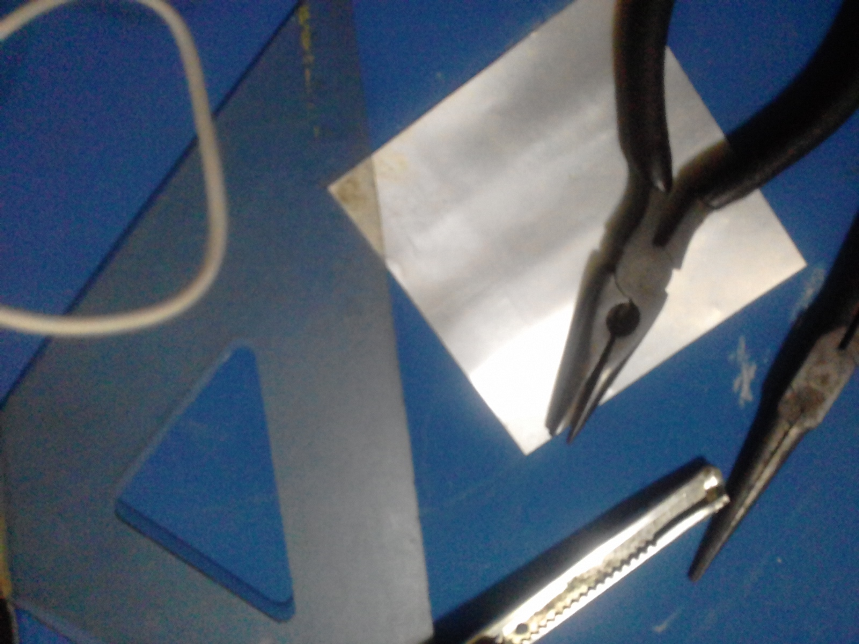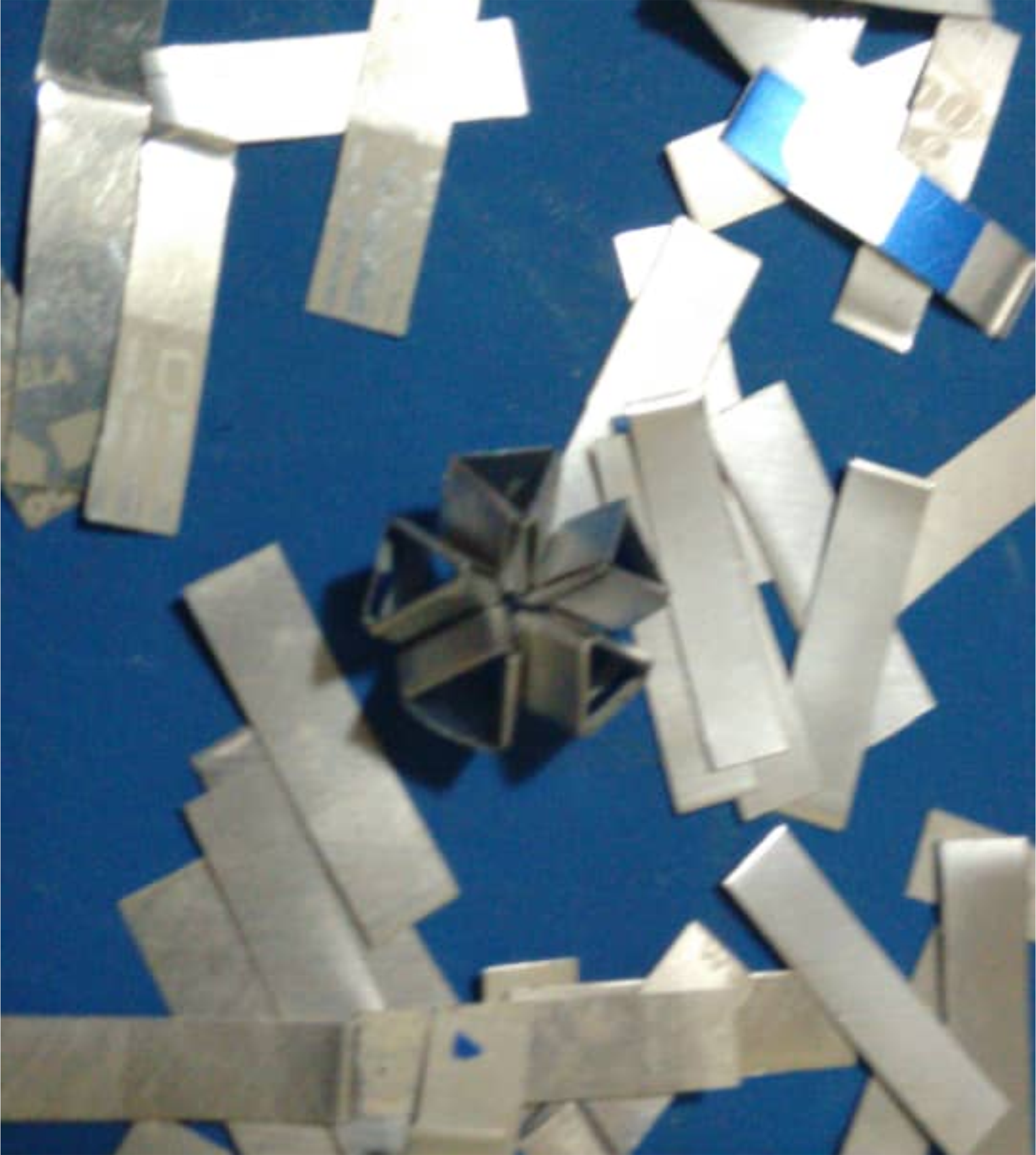 En este caso lo estoy realizando con laminas de aluminio tome una lamina de 8cm x 8cm y saque piezas de 0,5cm x 2cm de esas utilice solo 50, adelante muestro parte del proceso