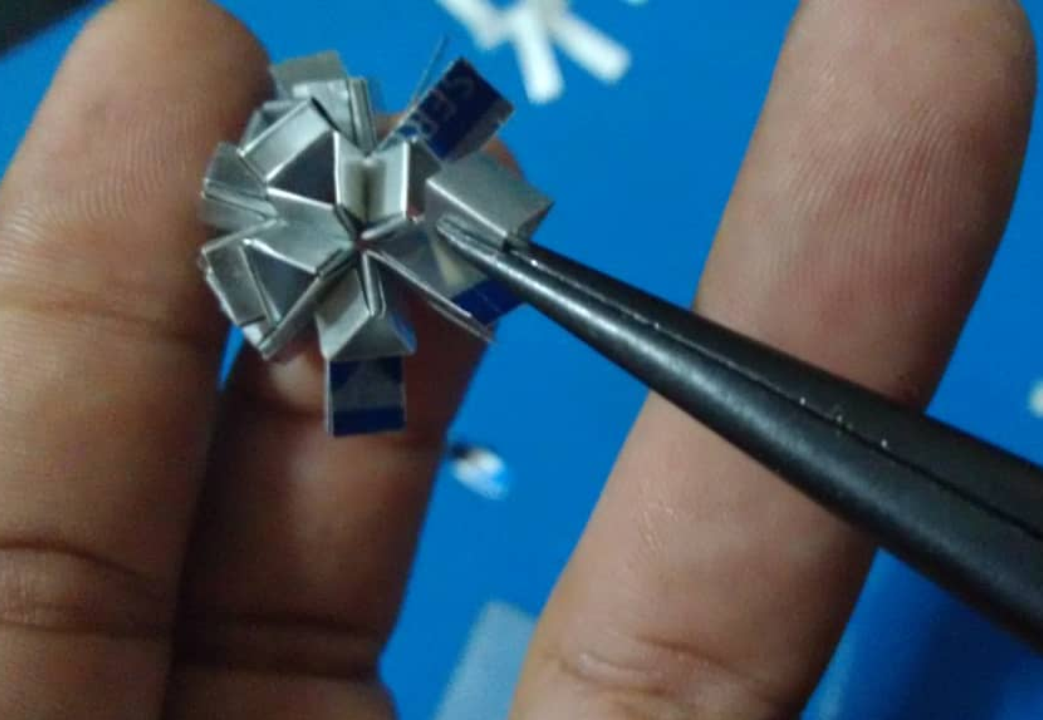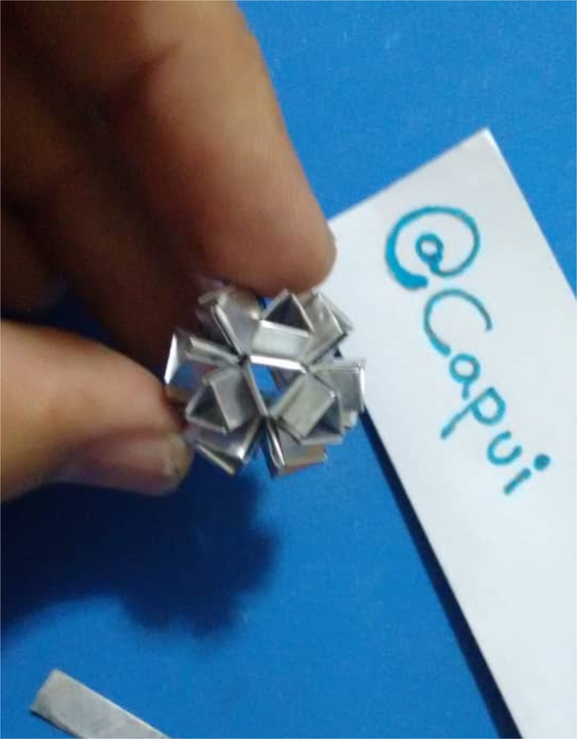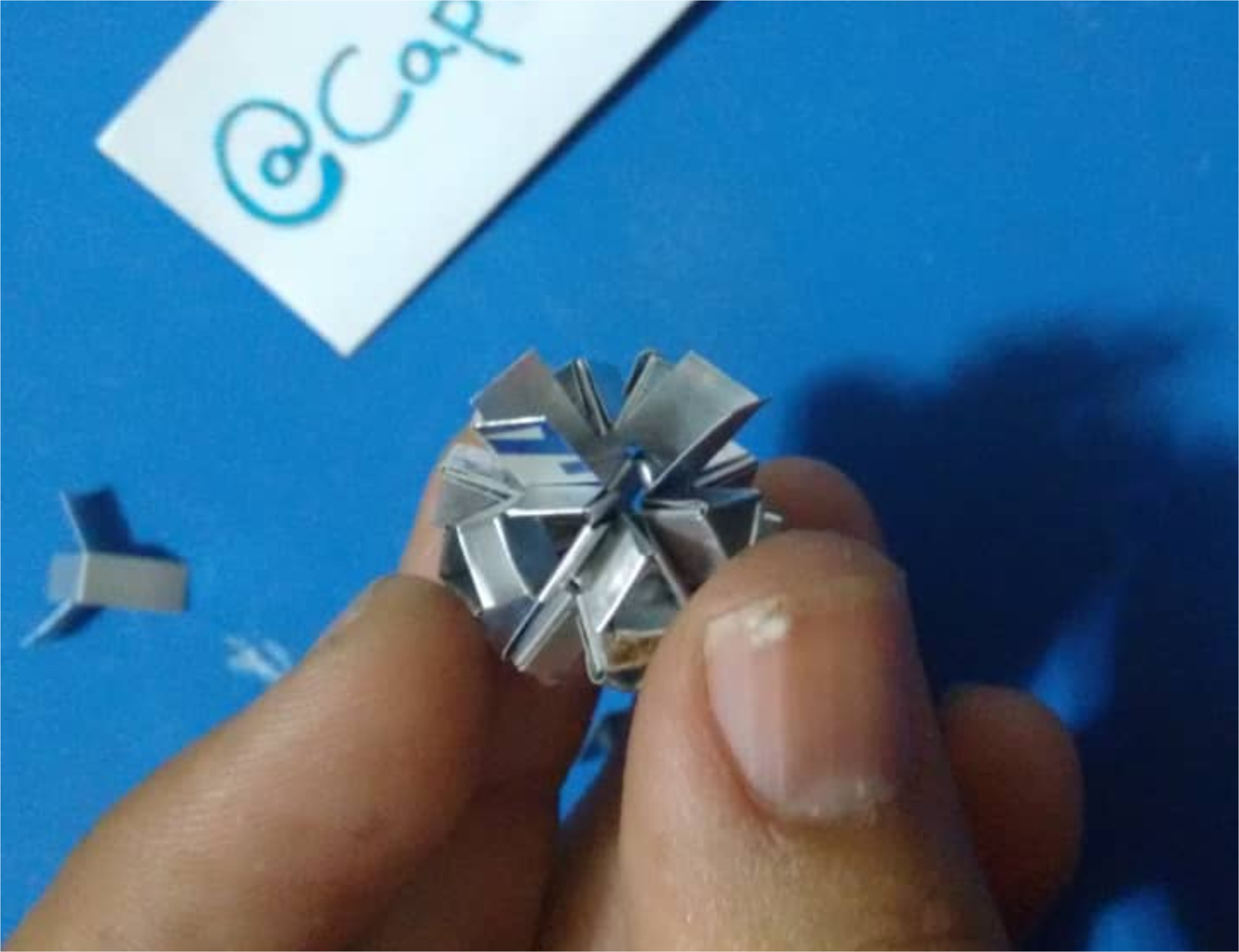 En este caso lo estoy realizando con laminas de aluminio tome una lamina de 8cm x 8cm y saque piezas de 0,5cm x 2cm de esas utilice solo 50, adelante muestro parte del proceso