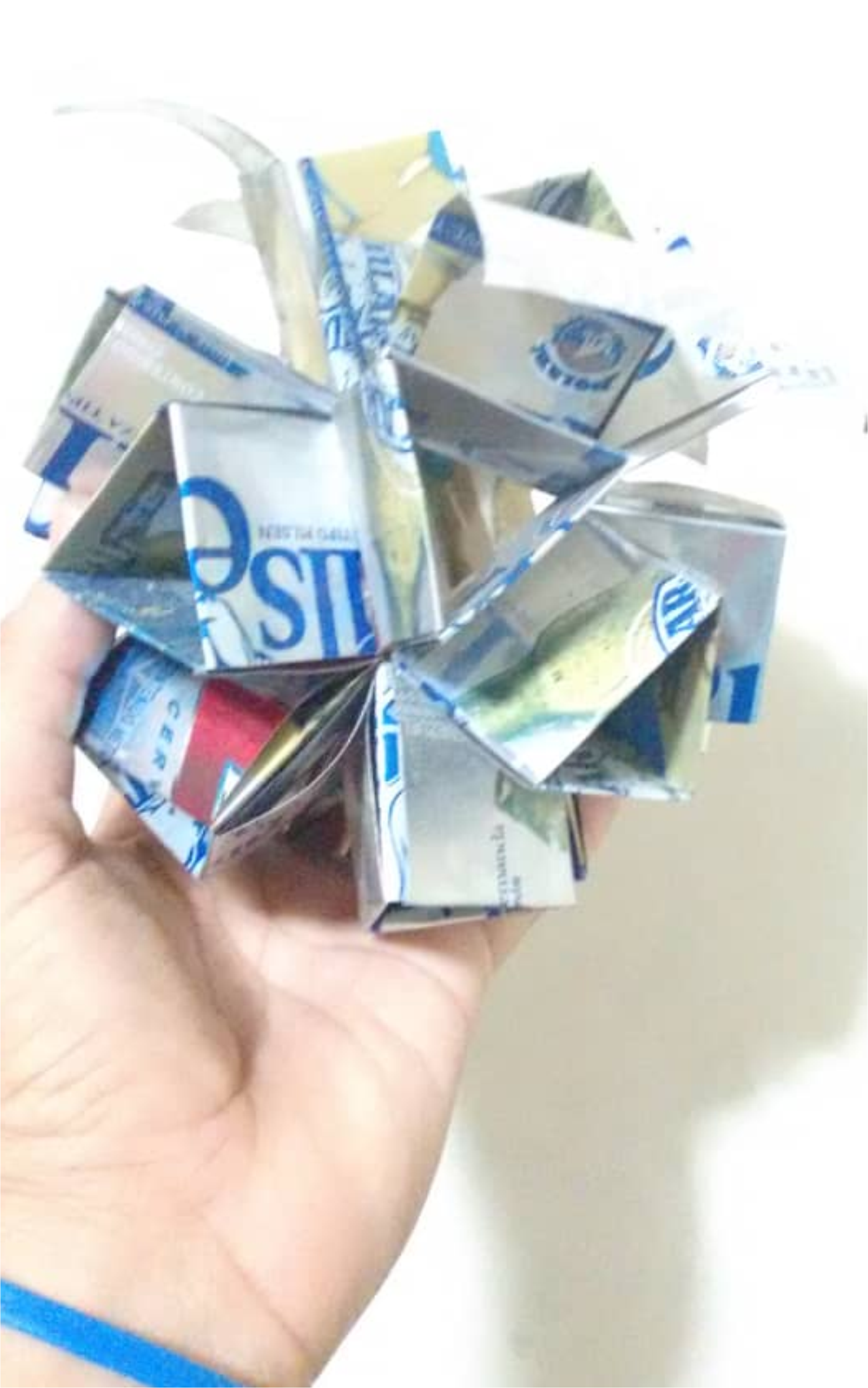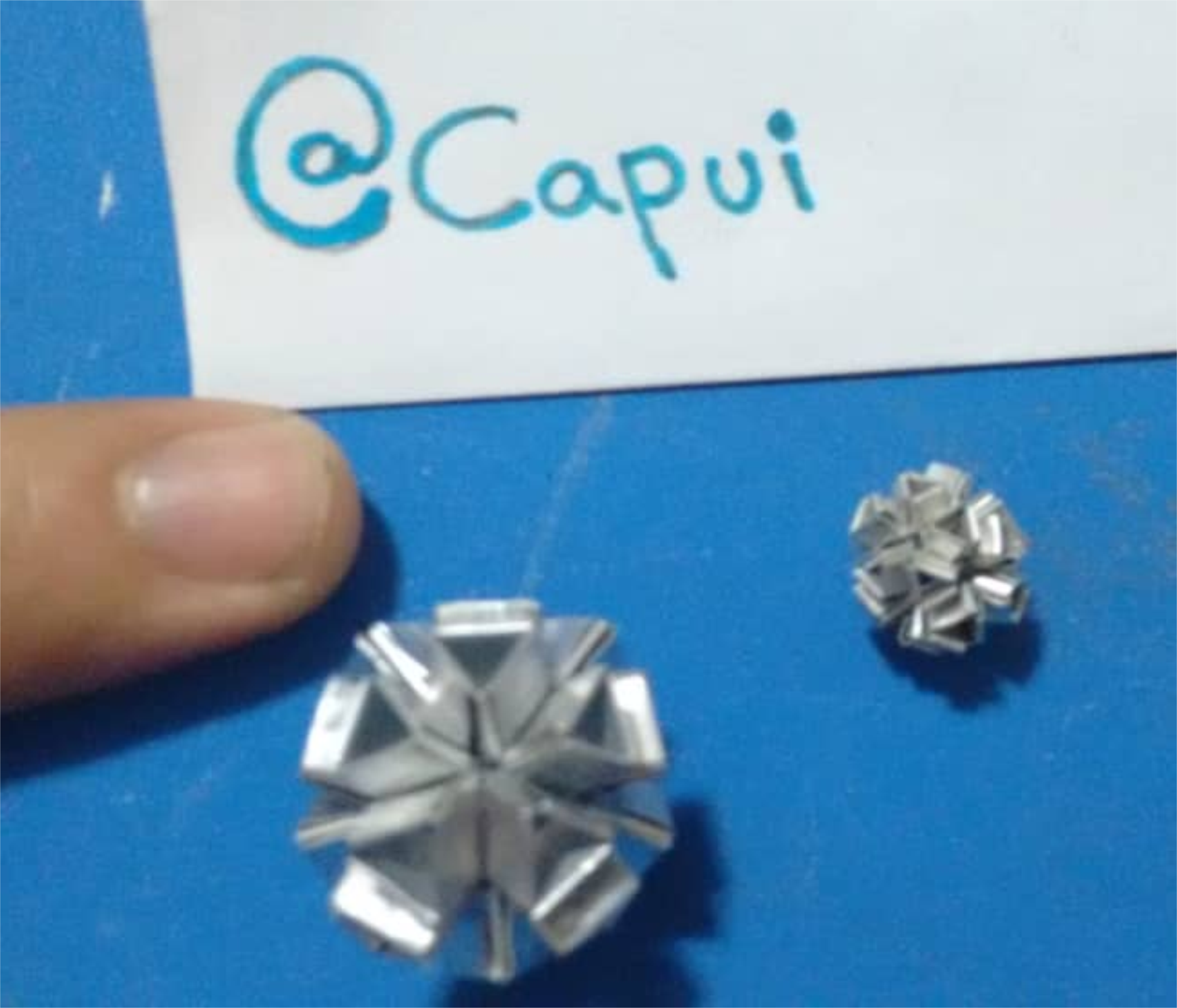 Hoy les vengo a mostrar unos pequeños kusudamas hechos por mi en laminas de aluminio,