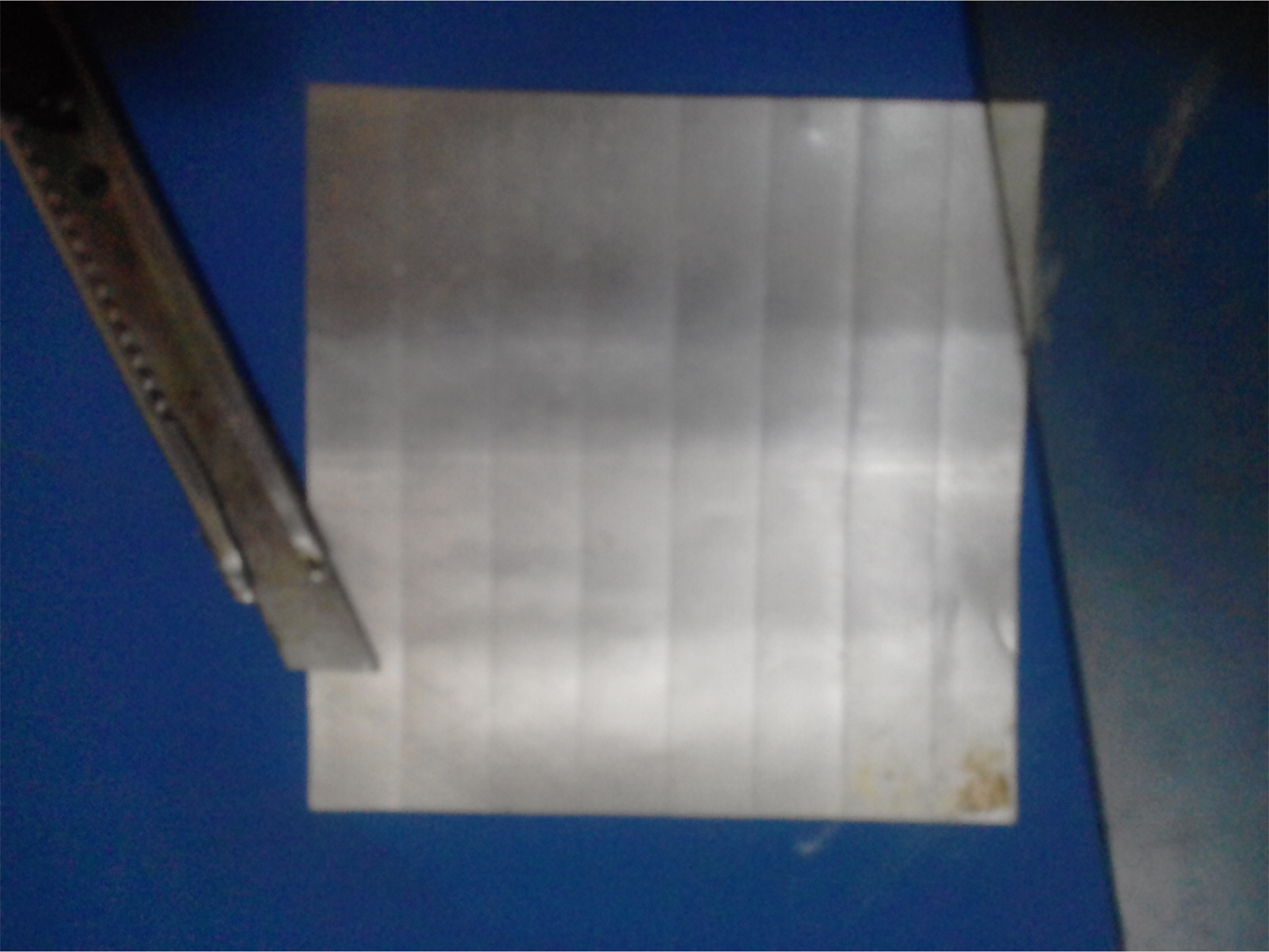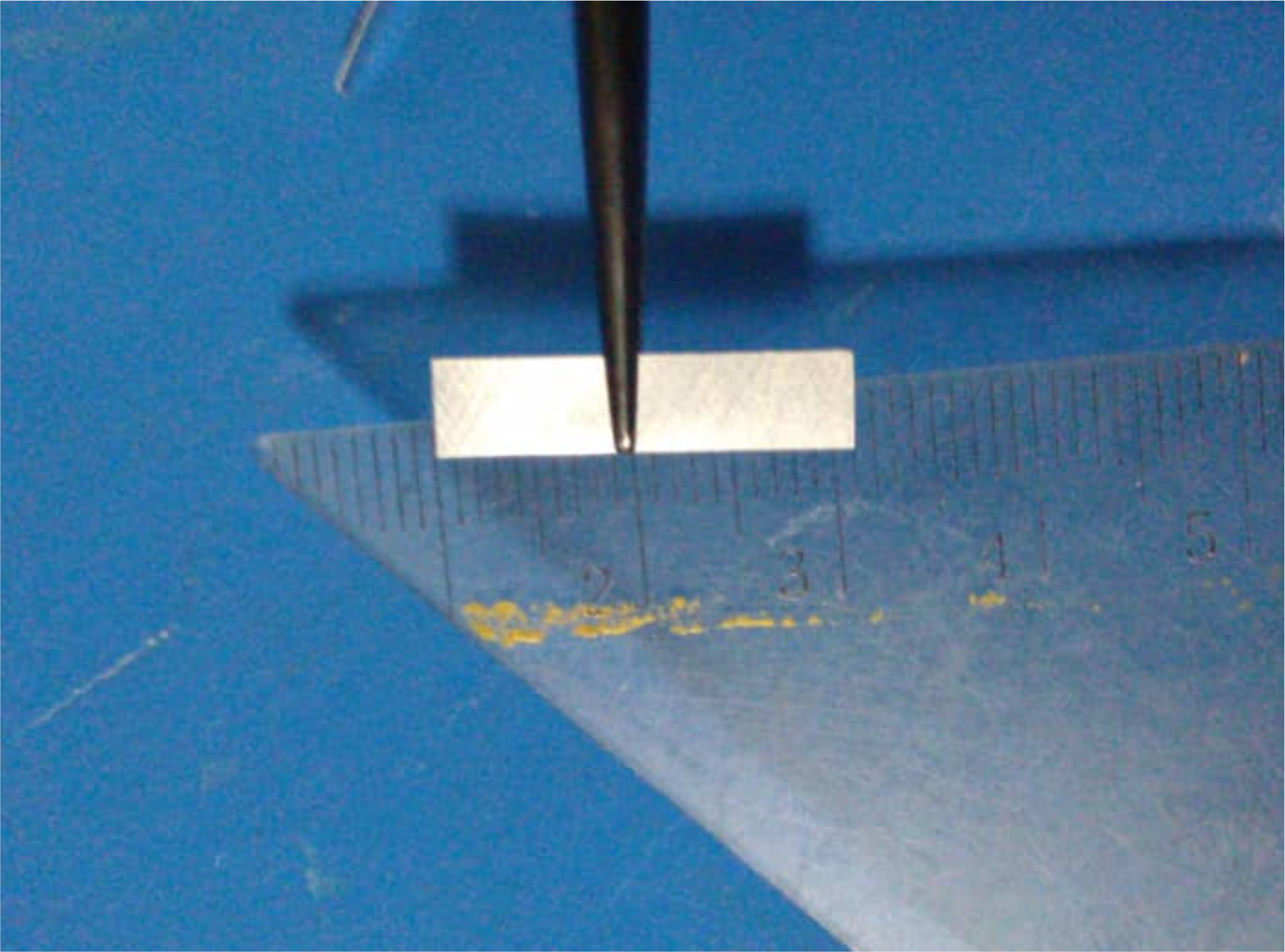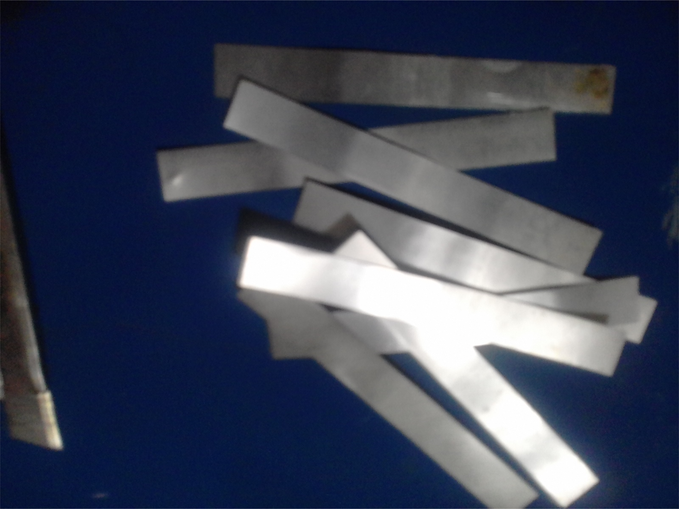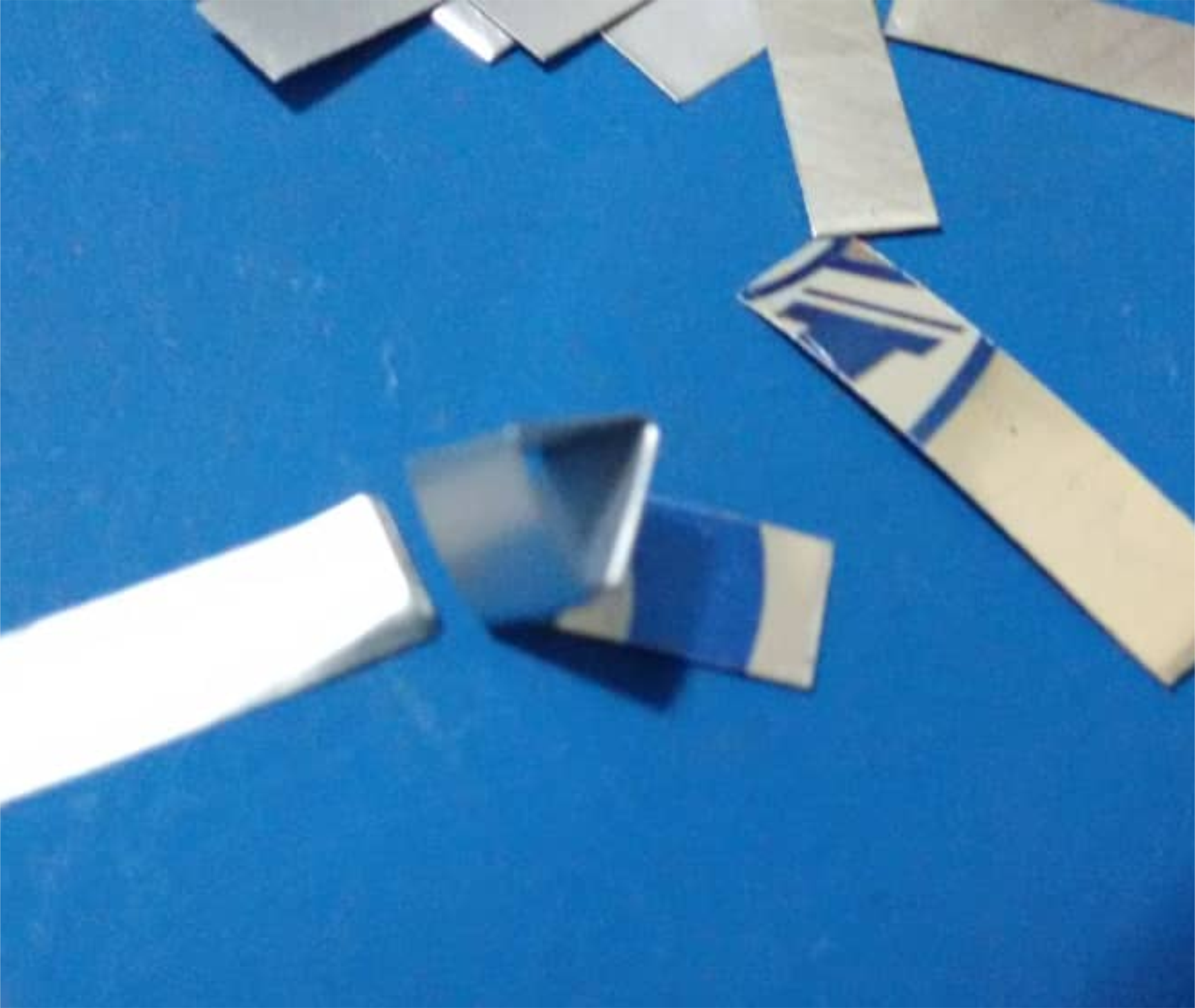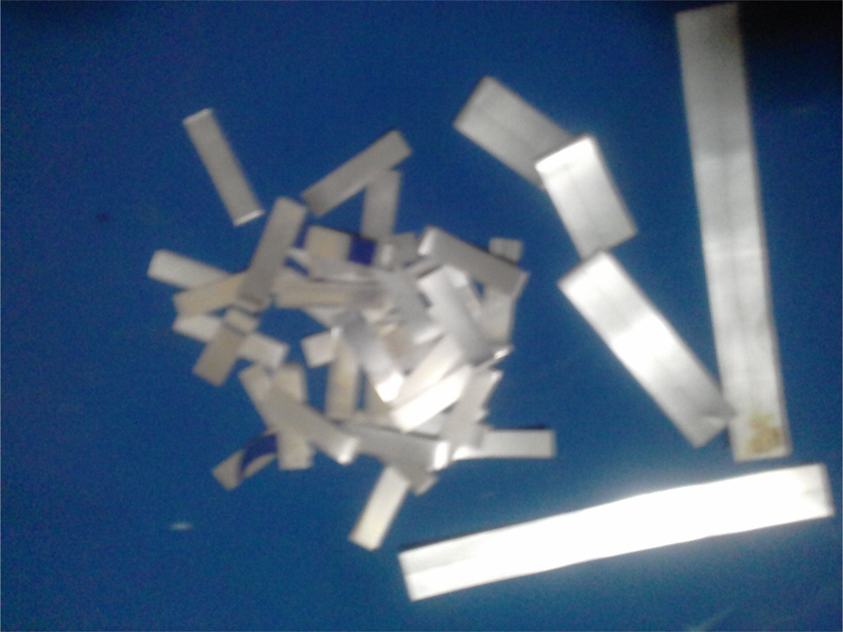 Como pudieron ver asi fue que seccione la pequeña lamina y saque poco mas de 50 laminitas de 0,5cm x 2cm