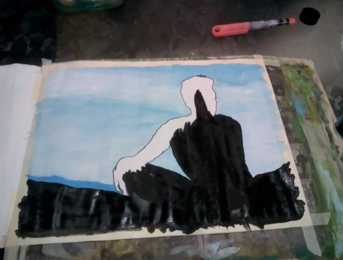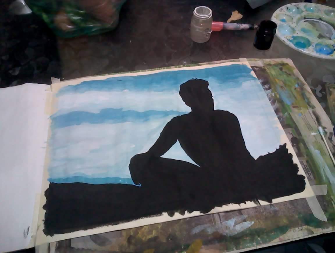 Olah steemians. Here is another painting of mine. This painting is a silhouette photo of my love. I can show you the original photo of this which was my reference for this painting. The location of this is in Tops, Busay Cebu City. The view here is a must see. The view is even prettier at night where you can see the city lights. You could also feel like you are flying up high because of the cold breeze and it is on top of the mountain. A lot of peope come here to relax, unwind and to give space to their broken heart. My love and I came here once when our hearts were quite falling apart. We even shed tears while talking our hearts out in here. This place is really nice, so, if you've have the time, come and visit here. There is a P100 entrance fee but you get to see yourself relaxing for a long time there.