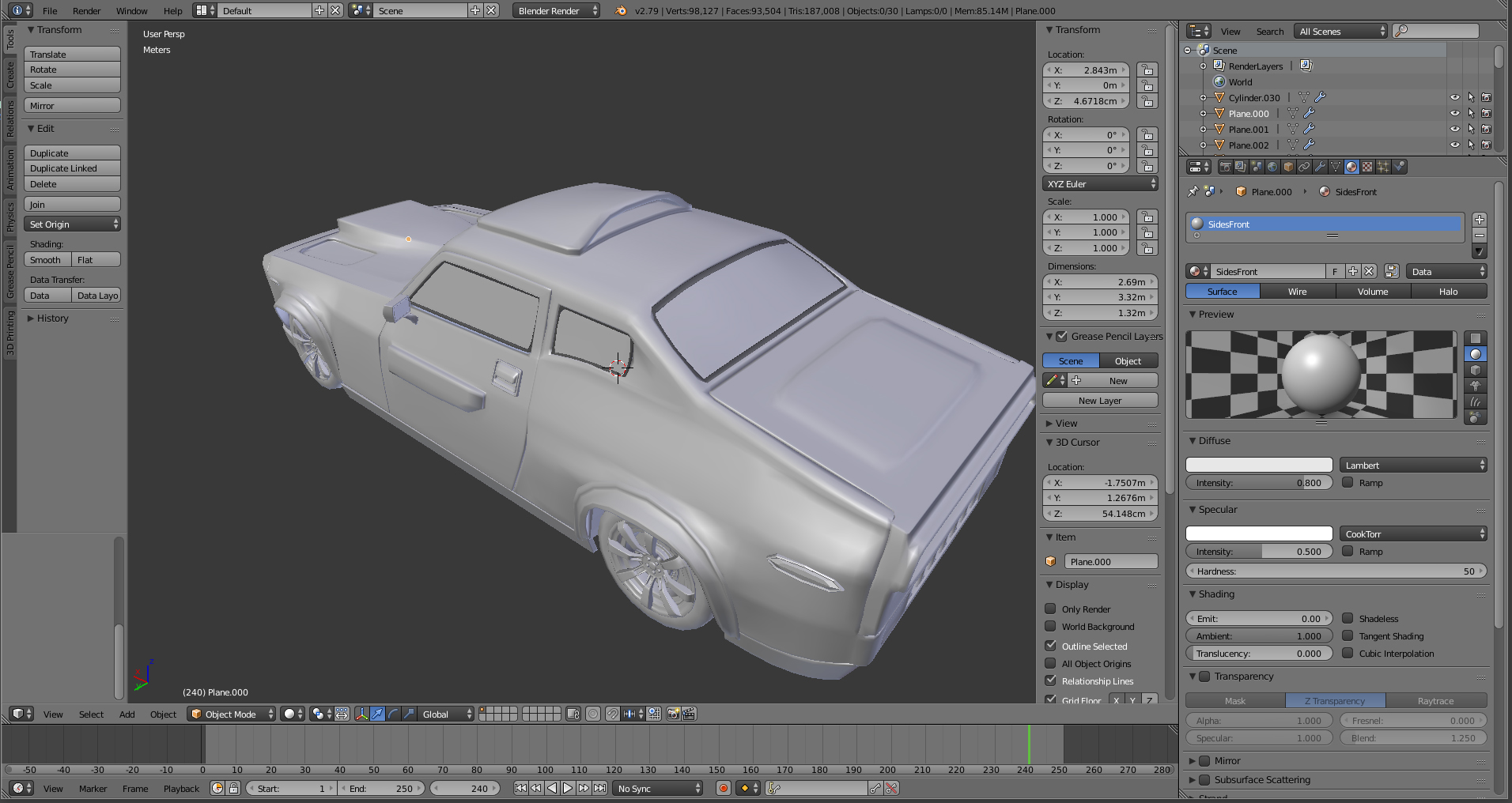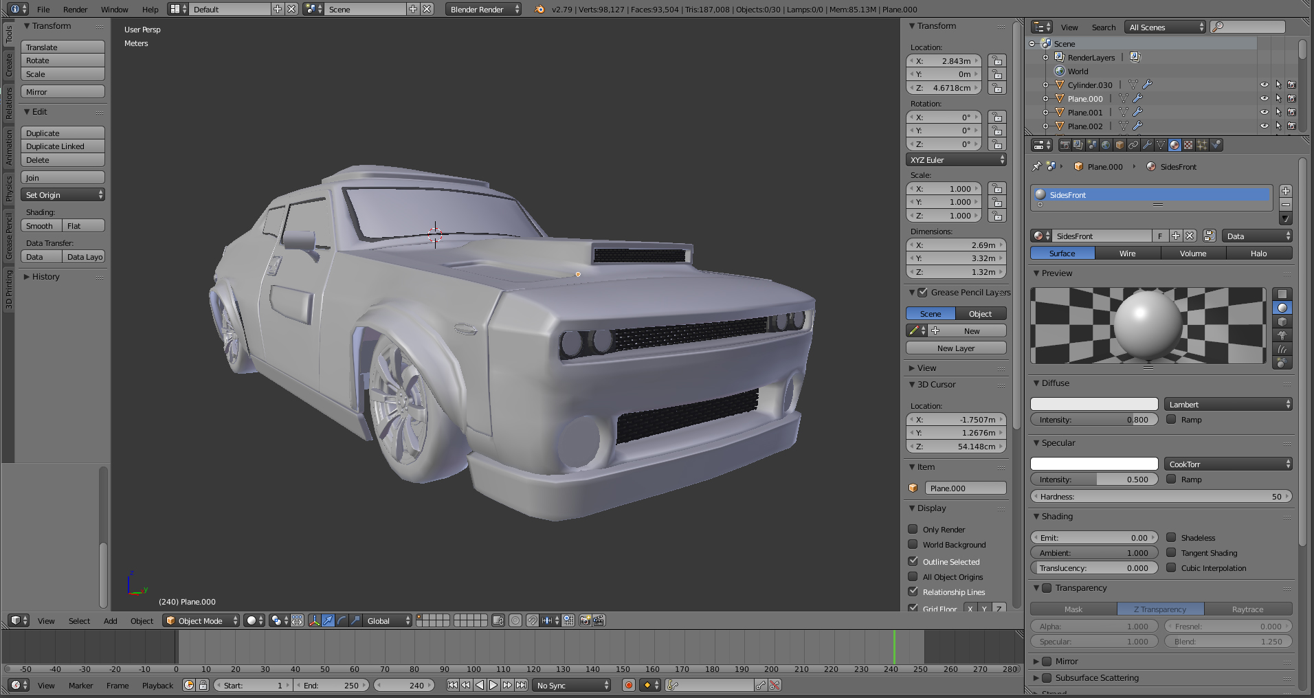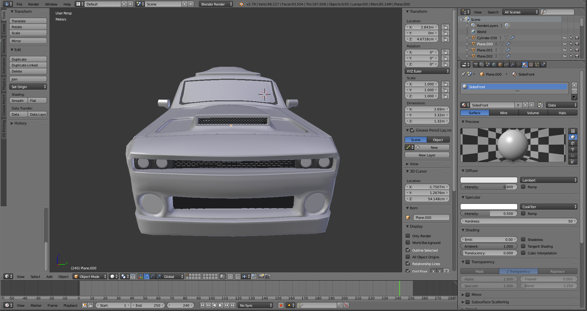 The Dodge Challenger made in Blender. This is my project I am currently working on. I spent the last days with modelling in Blender. Today I started with painting the textures in Substance Painter. Maybe I should do some rain drops on the surface?!