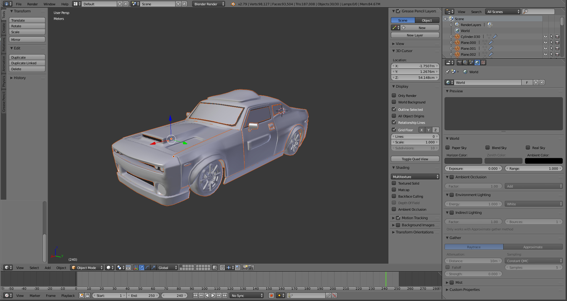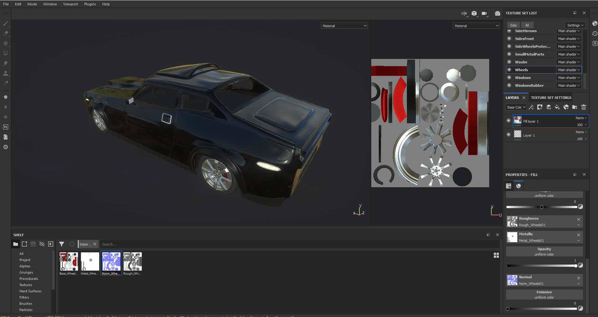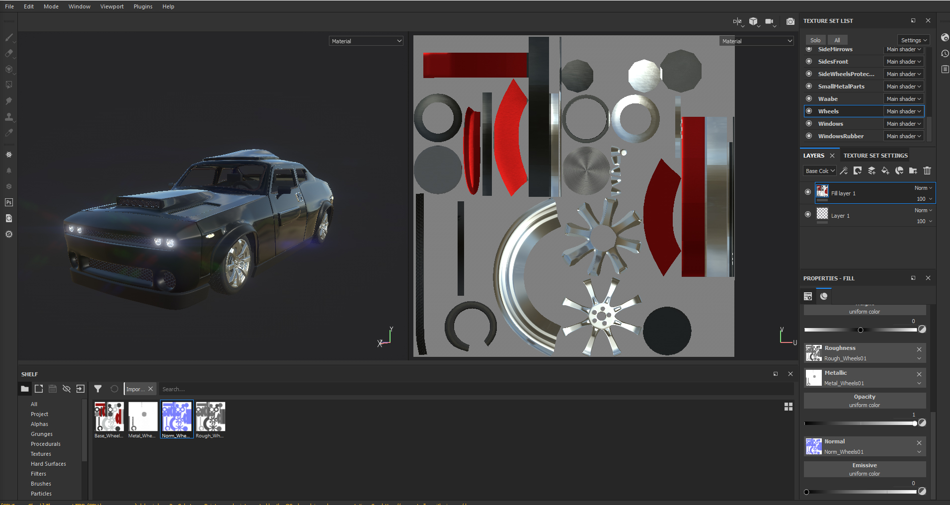 The Dodge Challenger made in Blender. This is my project I am currently working on. I spent the last days with modelling in Blender. Today I started with painting the textures in Substance Painter. Maybe I should do some rain drops on the surface?!