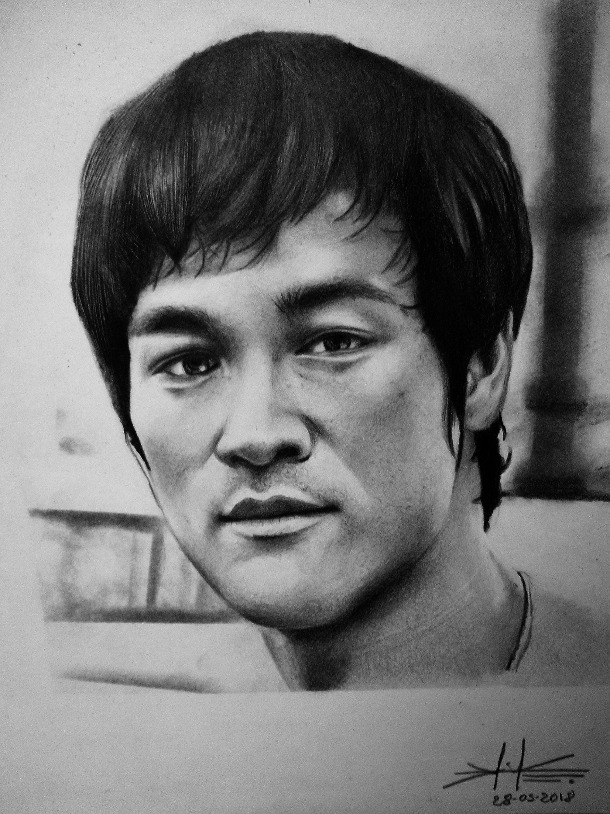 El retrato de el maestro Bruce Lee fue el segundo paso en el Hiperrealismo, esta vez trabajé con mas detalle las texturas de la piel, con la intención de que se lograran apreciar incluso los poros de la piel, Estuve una semana en terminarlo, aunque de esa semana solo trabaje 3 días de lleno en esta obra por motivos personales, ya lo había posteado anteriormente junto a las fotografías de el proceso de trabajo.