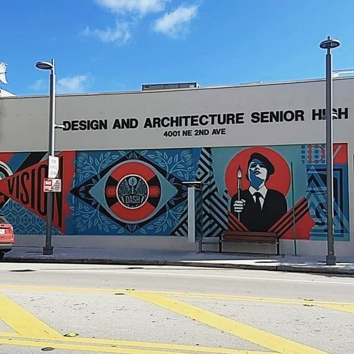 Design and Architecture Senior High School, where I graduated class of 2007, now graces the beautifully stunning work of famed graffiti artist turned imagemaker Shepard Fairey, otherwise know as OBEY.