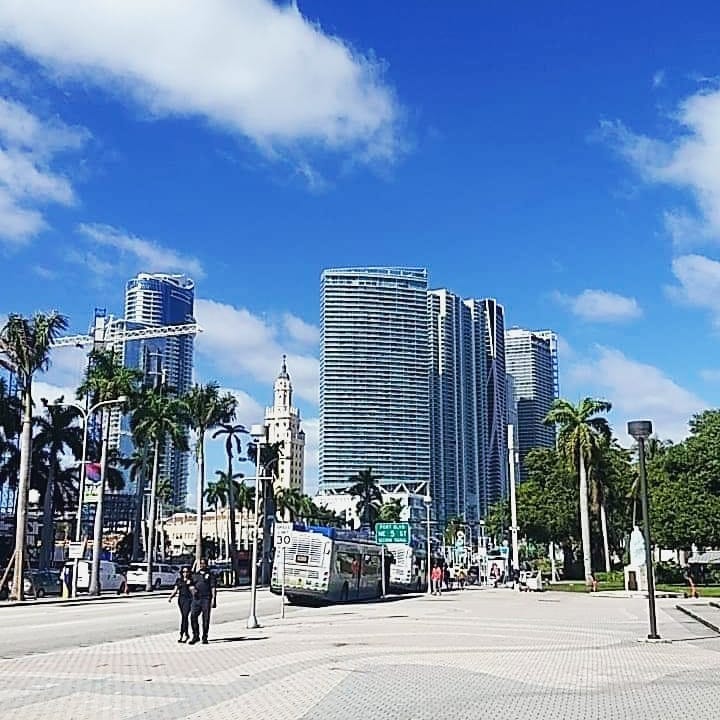 Looking North on Biscayne Blvd, the historic Freedom Tower can be seen among the brilliant rising towers of glass, steel, and of fresh faces of the future.