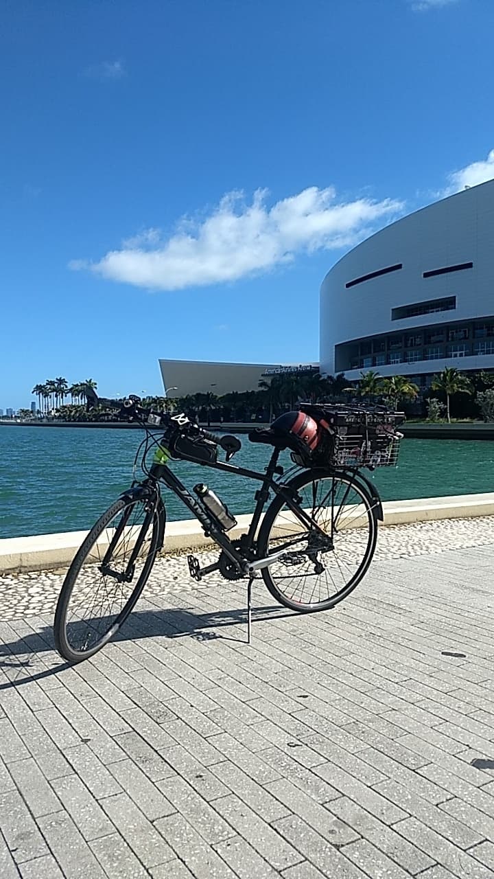 Always on the move, my bicycle Midnight and I hit the streets of Downtown Miami.