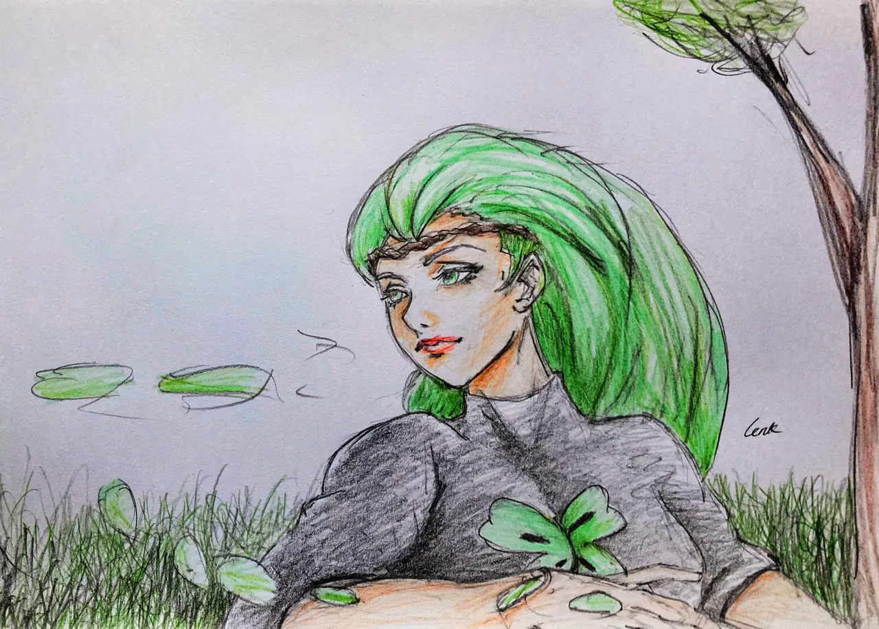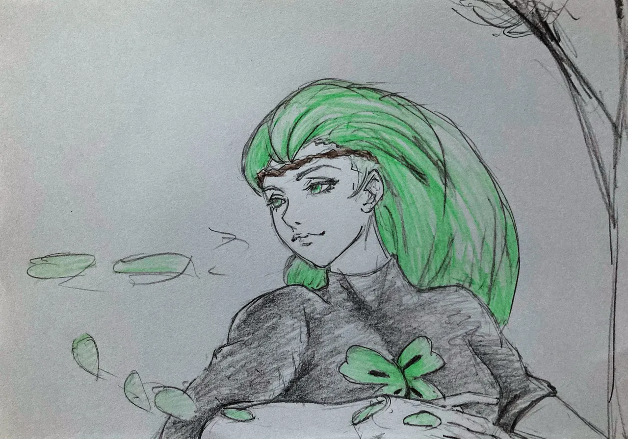 I used different shades of these colours to arrive at this; green, black, ash, brown, red, orange, peach and pink..