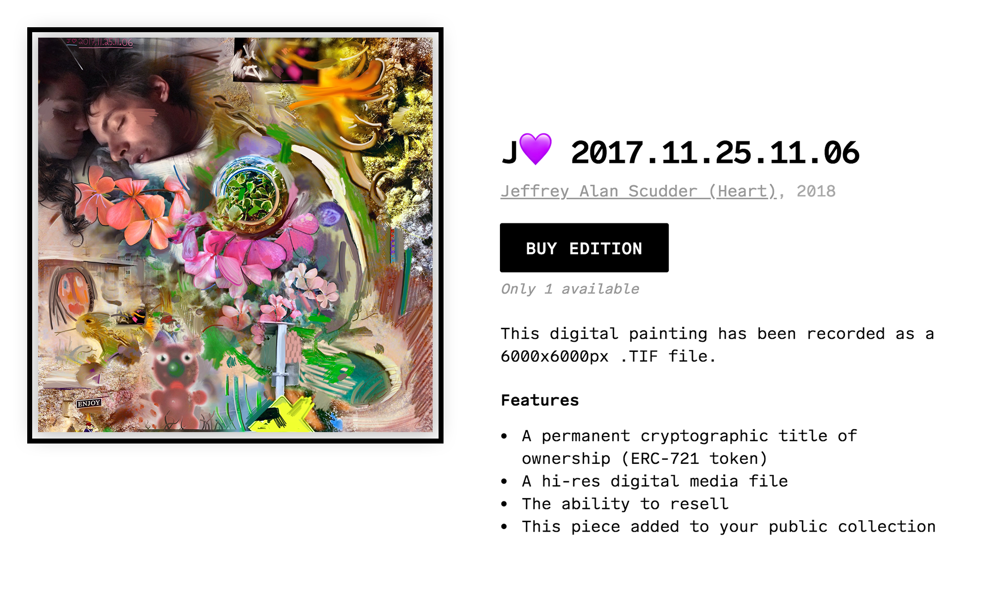 Finally, new media artists are attracting huge audiences online, but there’s no straightforward and scalable way to collect their art and support their craft. The ERC-721token standard establishes scarcity and authenticity of digitally produced art, so artists are able to confidently sell digital limited-editions to their fans.