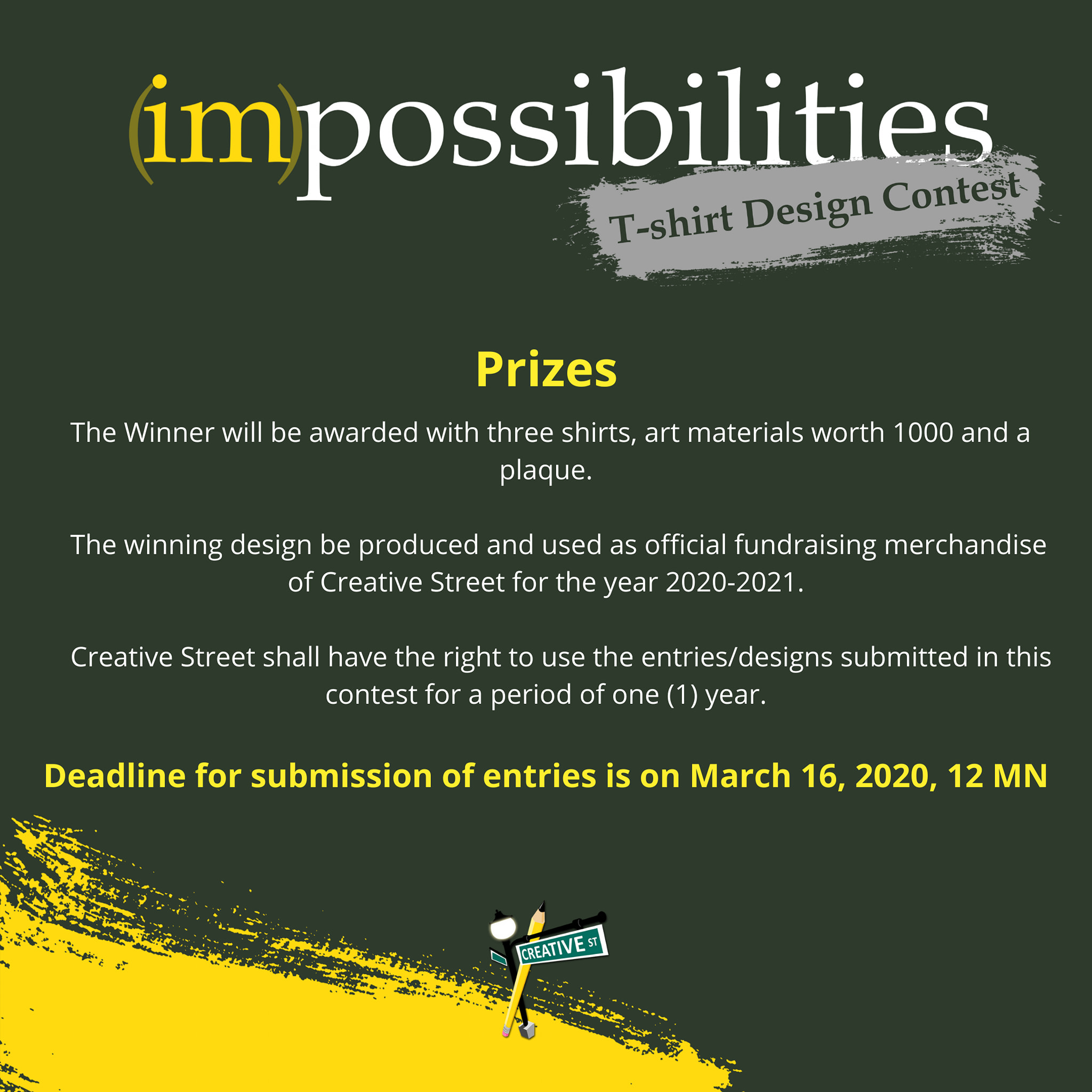 - The contest is open to everyone who is a member and volunteer of Creative Street.
