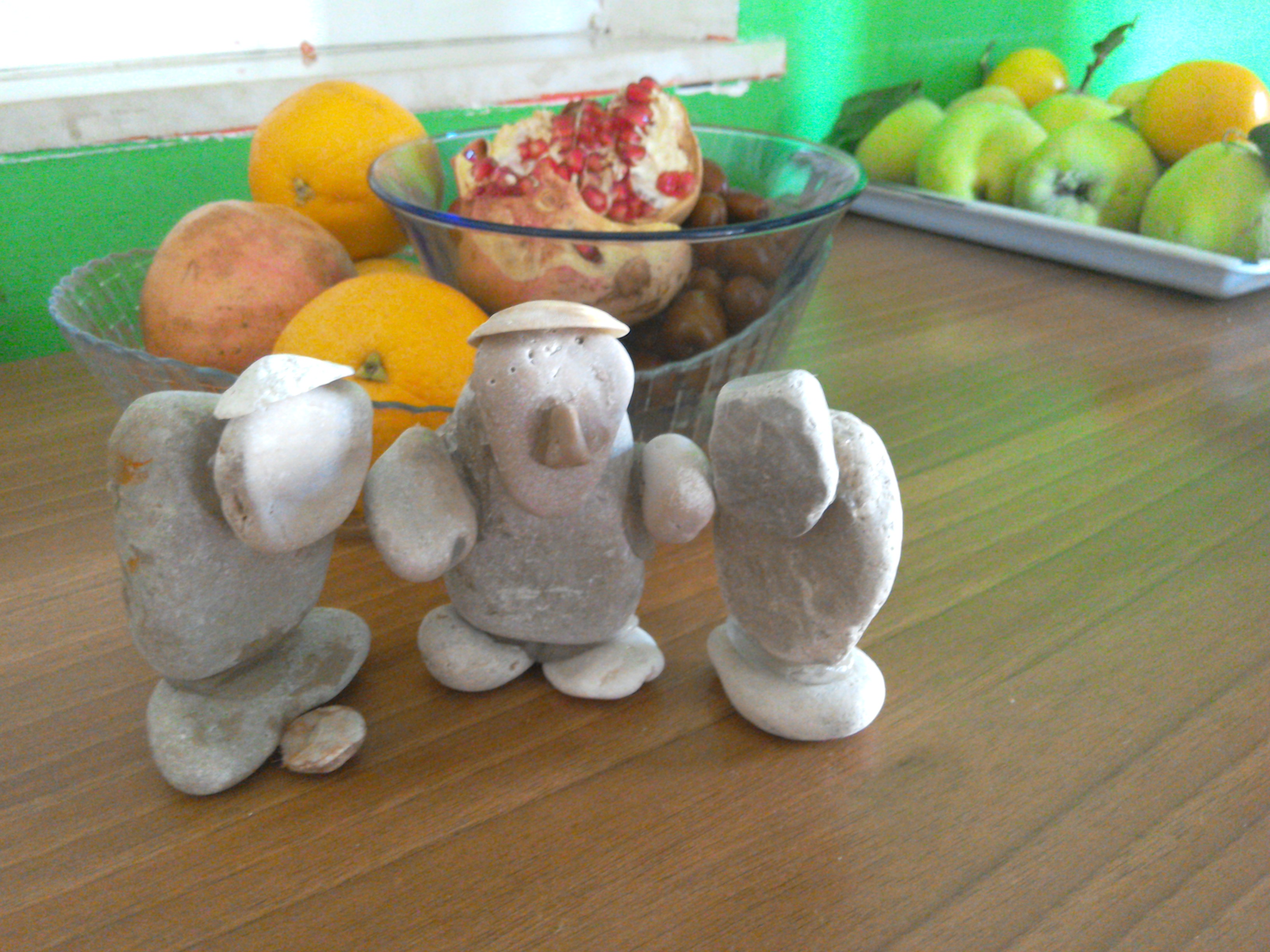 I make sculptures and suvenires from sea stones. These stones are only from island named Lupac, Dalmatia, Adriatic sea...Island Lupac is not habbitet but long ago it was a part of island Prvic where the famous inventer of parachute Faust Vrancic was born. Island lupac has a few smoll beaches with rocks shaped by the adriatic sea. I sail there to find the best exapmles of these rocks, many of sea shells and driftwood. The second phase is glueing the pebbles then drawing and painting.