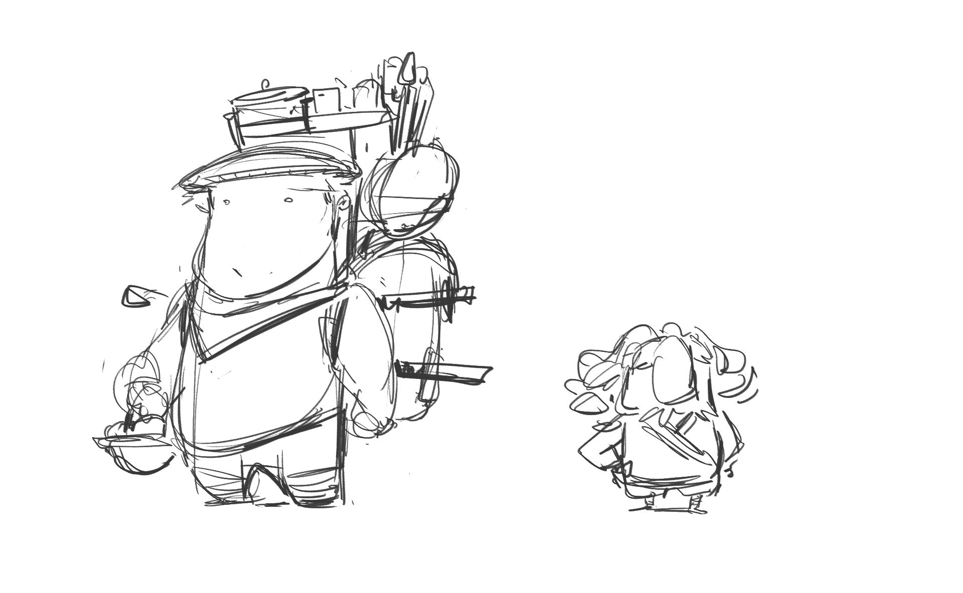 Here are other character ideas Yunhao drew out. They are all from the same island but have very distinct features and characteristics. Chubby Porcini likes to eat bamboo, one day he is too hungry and ate Cremini's house. Cremini is mad and turned his back on him...