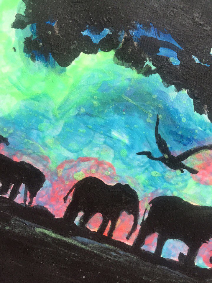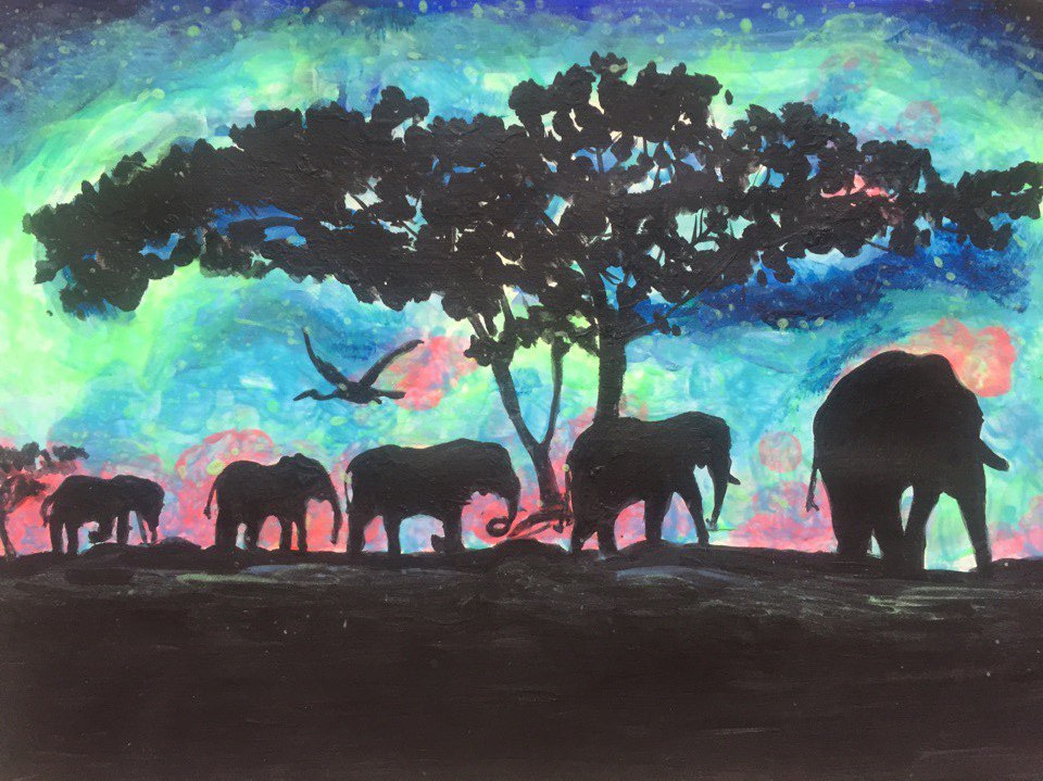 My new painting "Elephants". Let's learn to draw pictures that shine in the dark - 18 hours per night, 50 years.