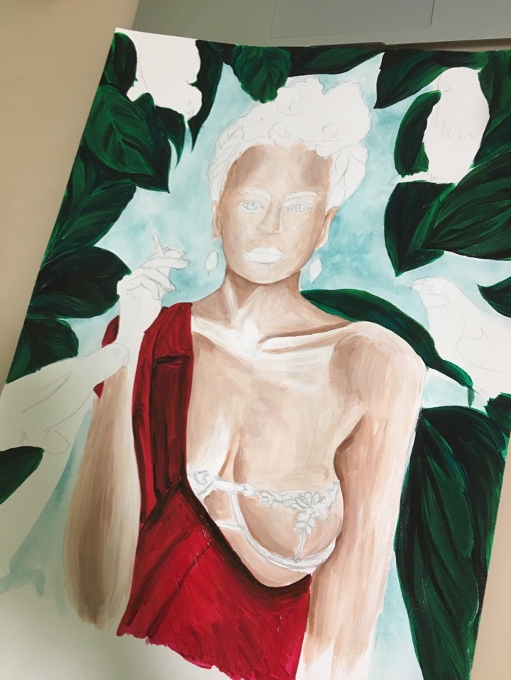 I painted looking at the photo. I painted Frida Kahlo