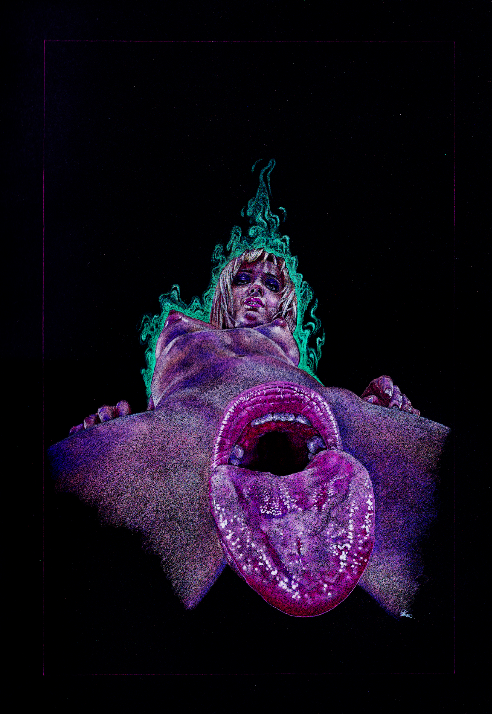 Lickdalekeogh (57)in #art • 6 years ago (edited) "Lick" prismacolor pencil on black A3 paper, 297 x 420 mm, (11.7 x 16.5 in) It has become a series, mouths for vaginas, there are now at least six of them. And when the stars align I'm sure there will be another. #drawing #boobs #mouth