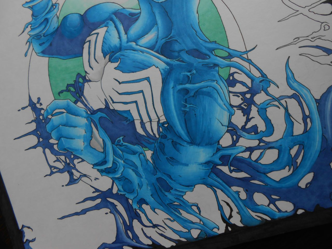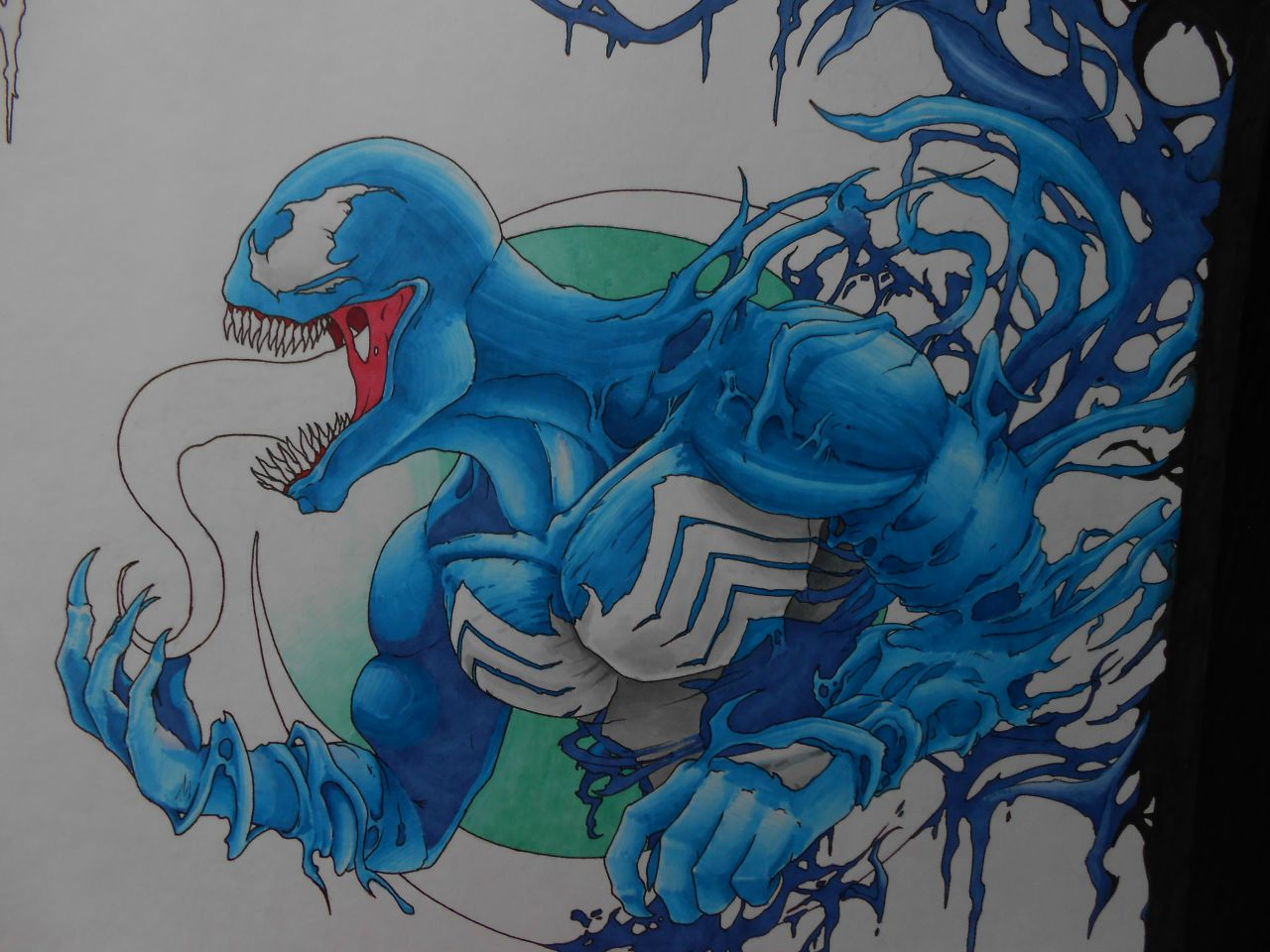 So I finished my first test drawing with new markers tools. I received them at the post office in the evening ... so on the next day early in the morning I sat down to think about what kind of drawing I should test them for. It took me half a day to do this! because I did not get any inspiration ... but somehow closer to the evening I thought, why not try venom! because it can use blue blue colors (which I love to use). And in the end I started it with inspiration .... It would take me half a day to get used to markers. Toward the end of the day, I mastered the specifics of the technique of these markers, and I was very surprised from receiving a new experience, which at first even gave a good result. Here is an illustration of the venom was very unusual. In addition, I immediately added a crescent moon that fits into it! and its symbiotic stretching processes, from which it gets out, this is already the addition of the dynamics of my style. Well, and the fact that already on the Internet there is a trailer for the upcoming film.