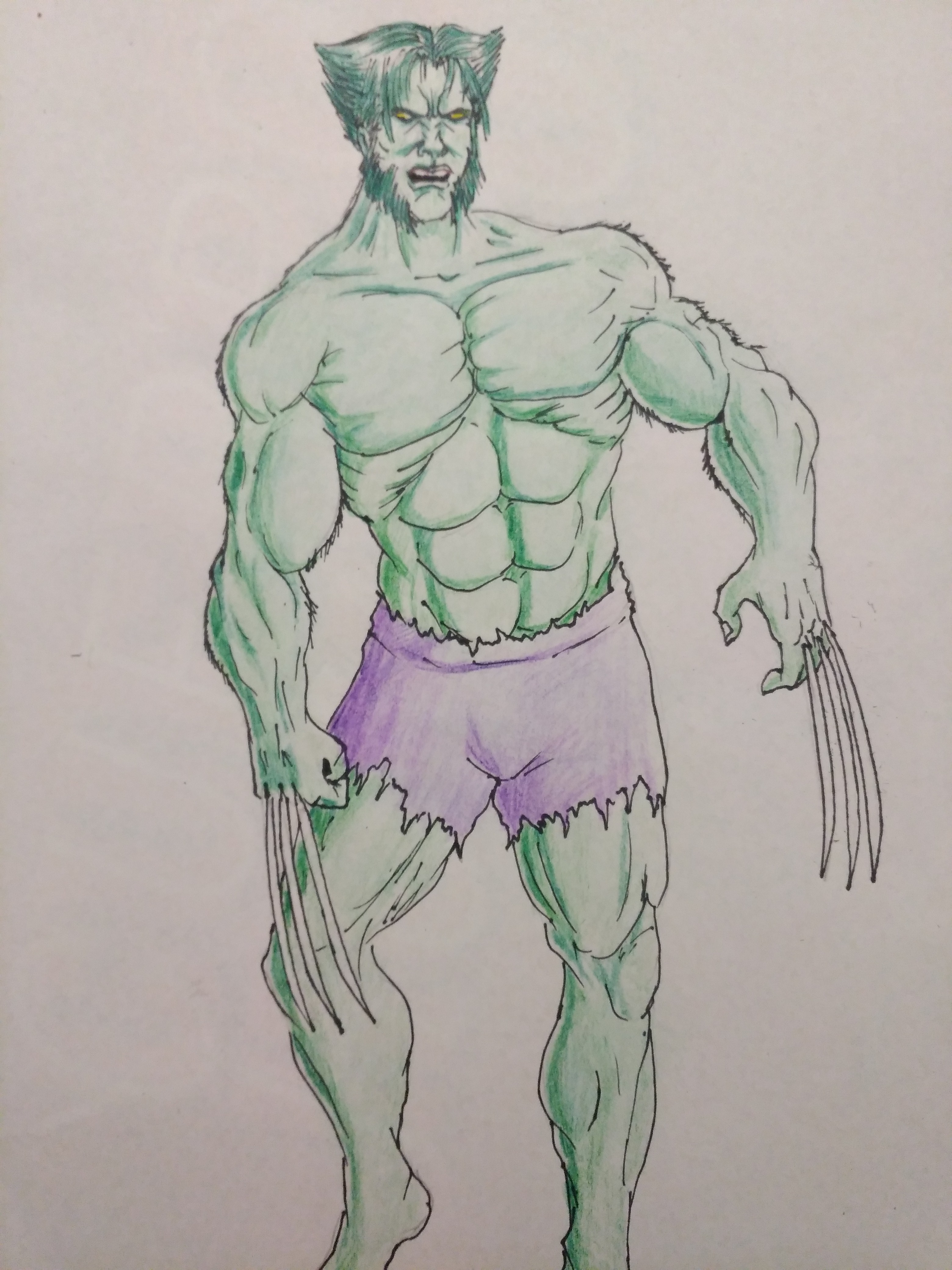 Este es el primero de una serie de dibujos en los que estaré mezclando diferentes personajes de anime y comics. En esta ocasión es una versión BETA de los personajes de Marvel Cómics Wolverine y The Hulk. Espero les gustes y estaré leyendo sus recomendaciones.