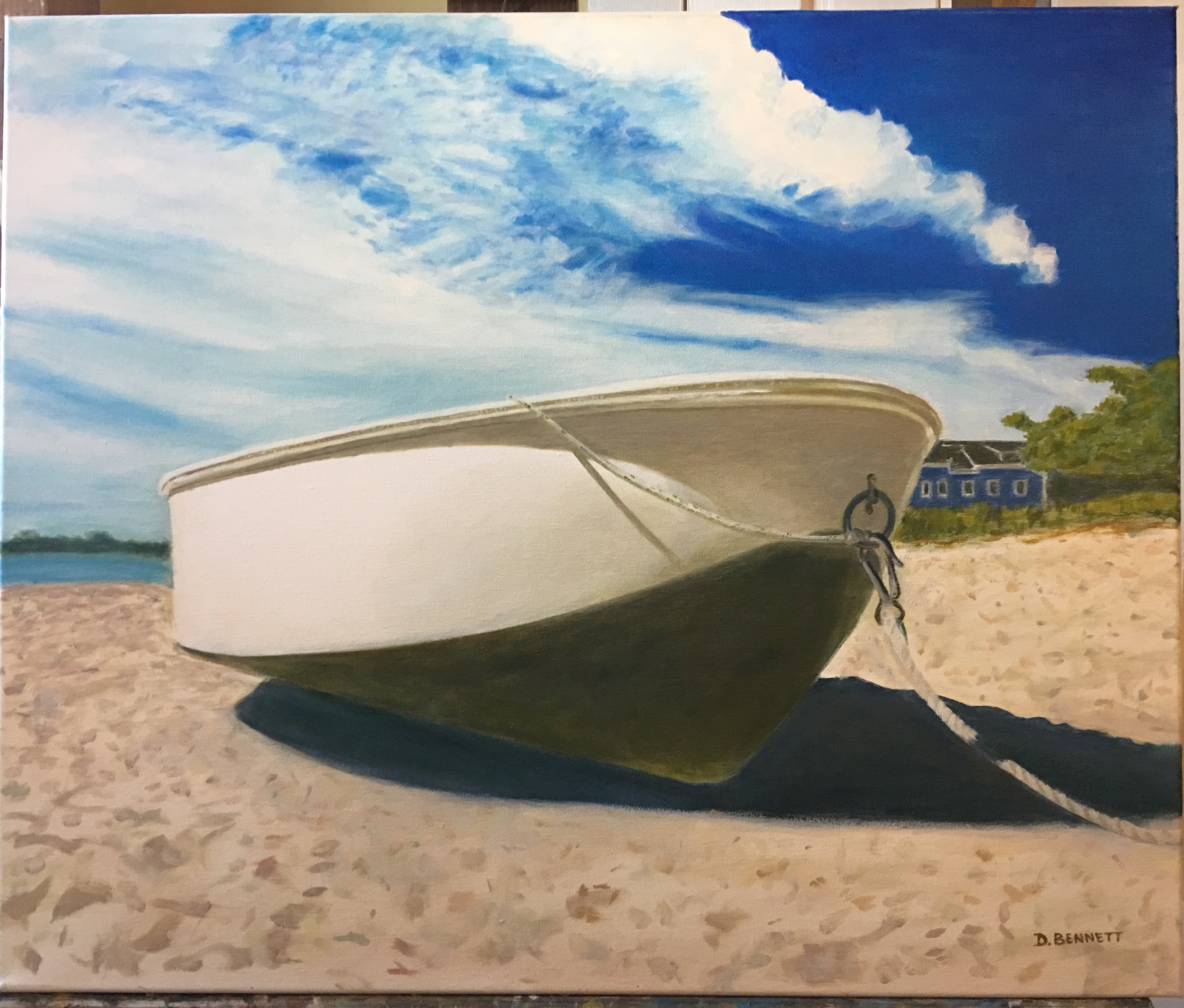 Love the sky and the soft looking sand @dbennet! I certainly like it :) With a simple object of a boat, you successfully combined simplicity and sophistication to create this piece. I like the close up of the painting on canvas too. Thank you for sharing your artwork with us. It does look like a photo.