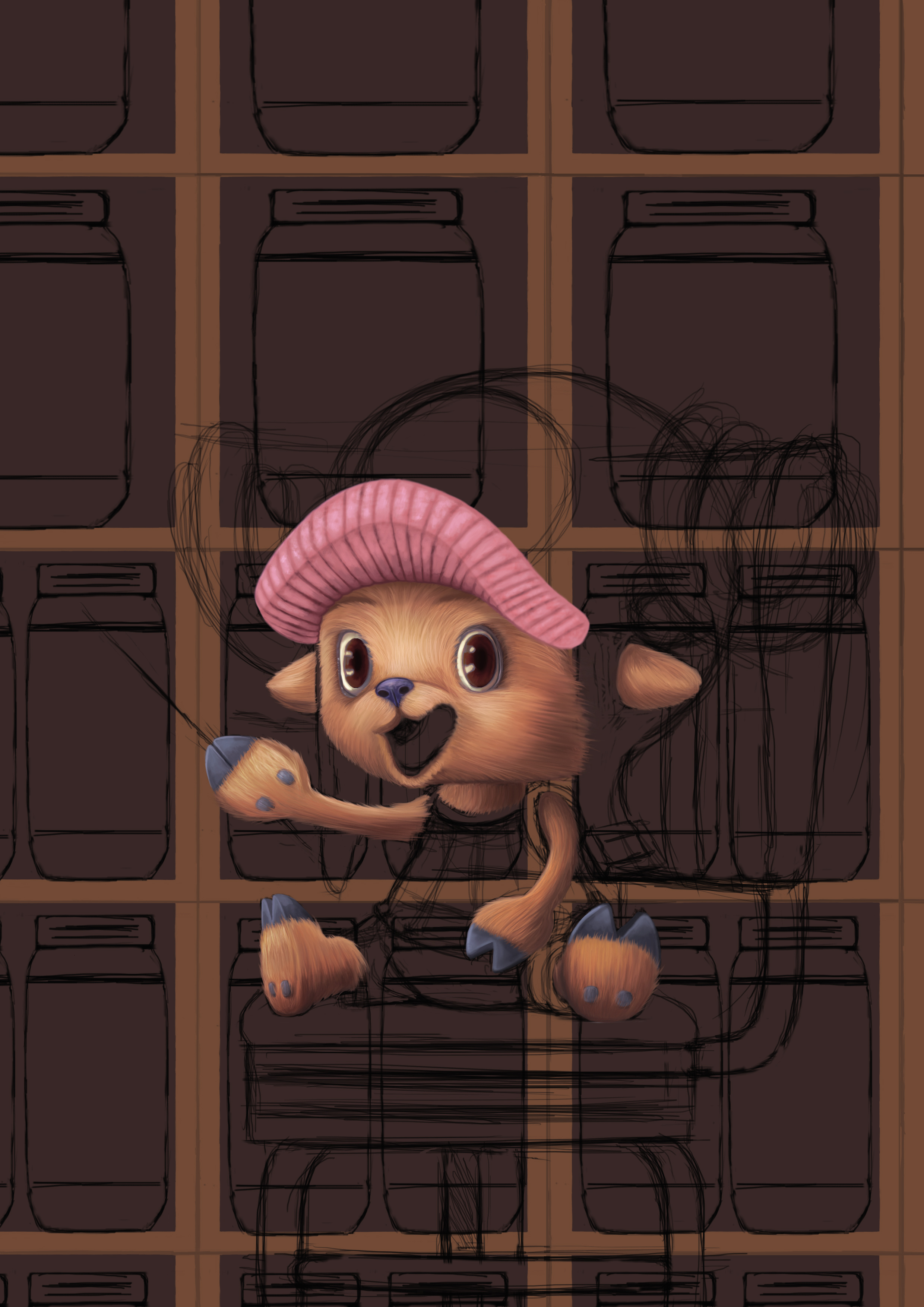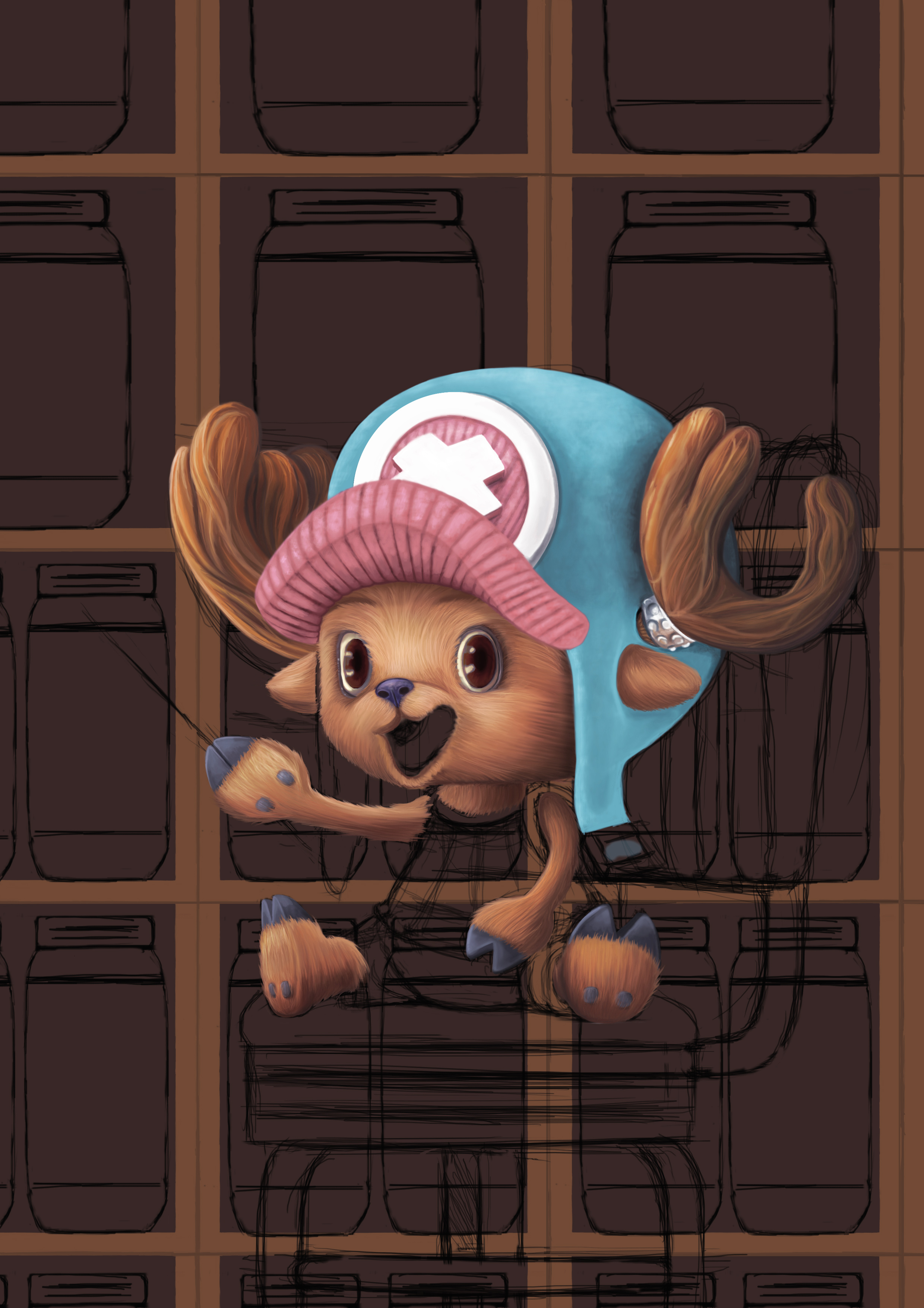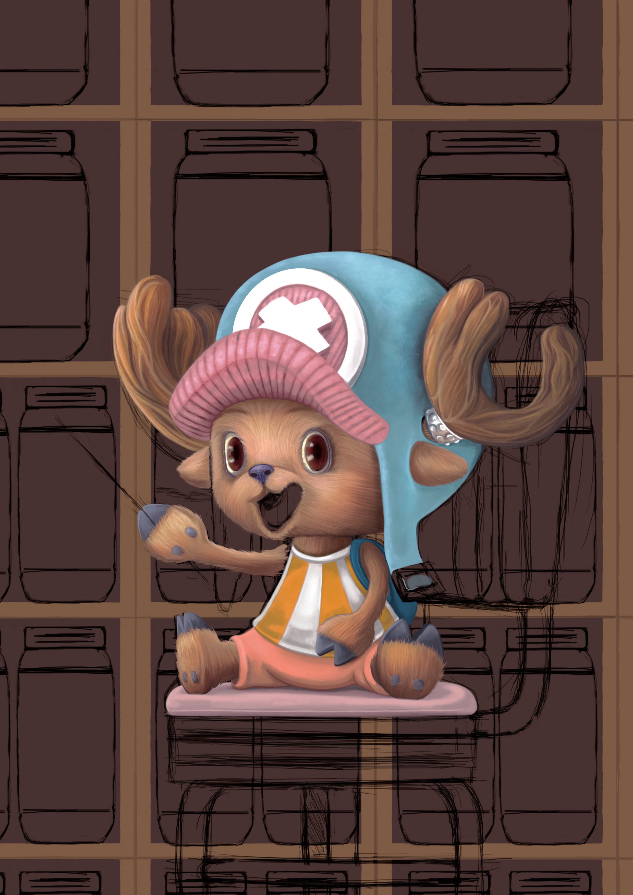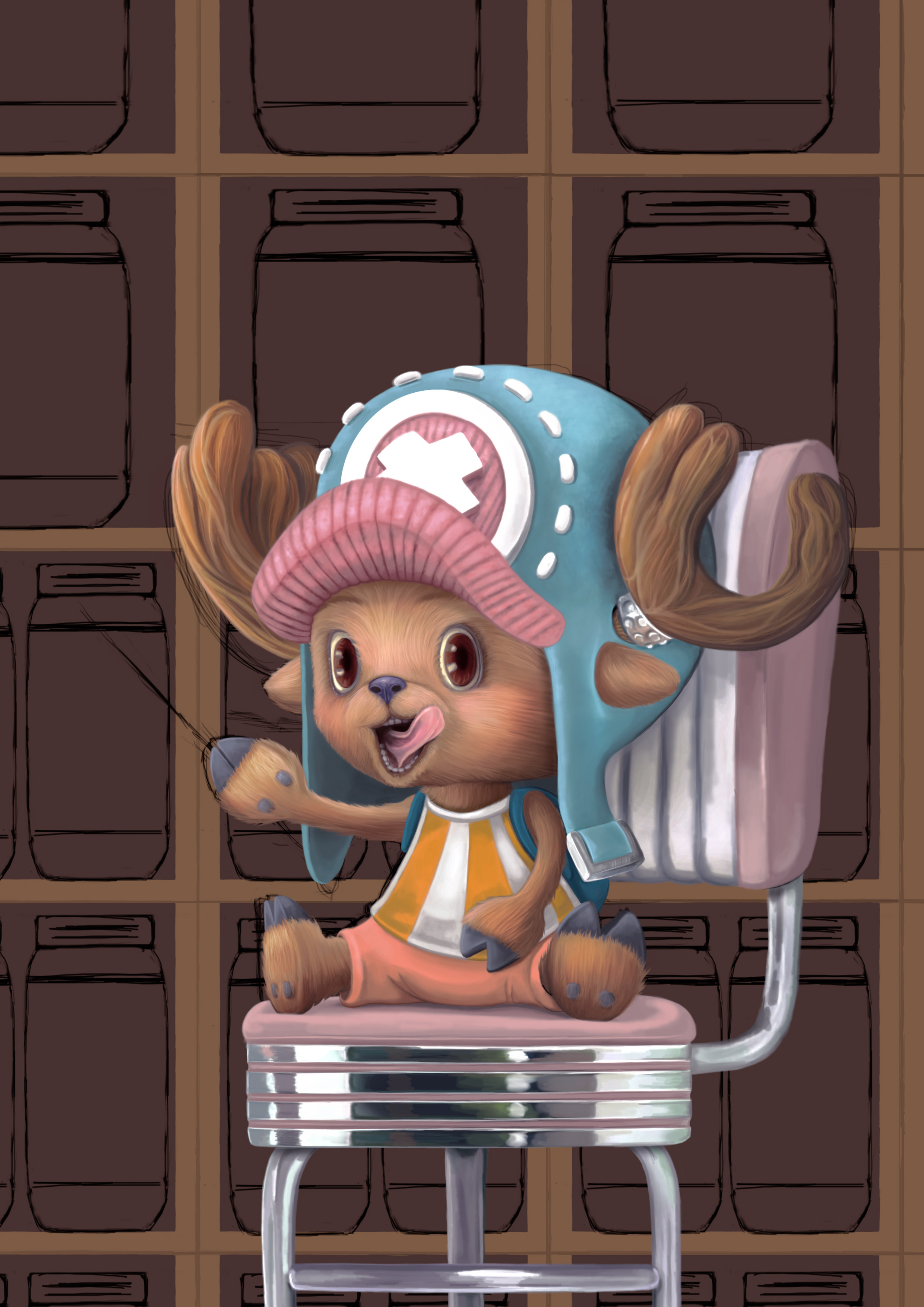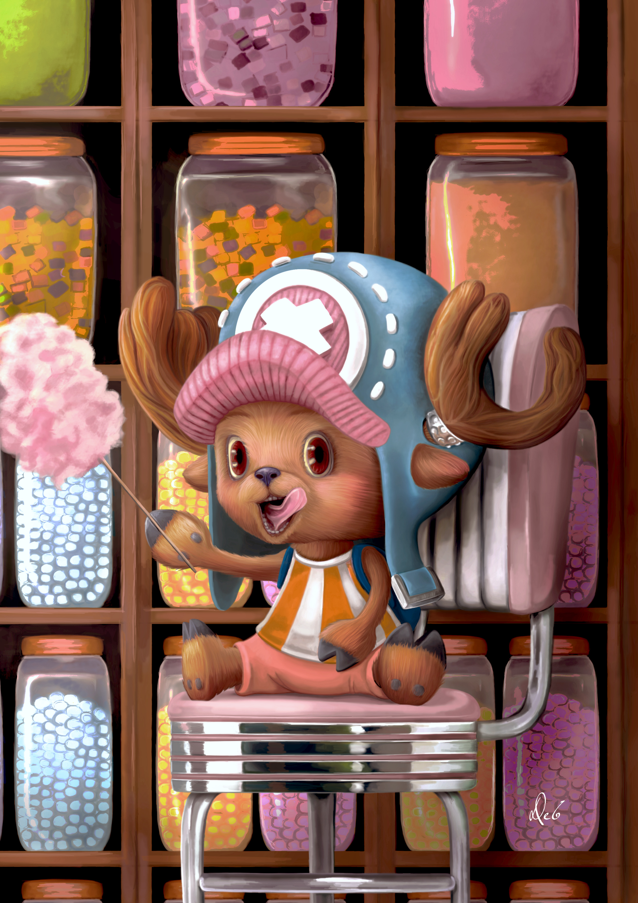 Fan-art illustration with the One Piece manga. A pick on the cutest member of the Straw Hat crew, Tony-Tony Chopper, of course with cotton candy in hand.