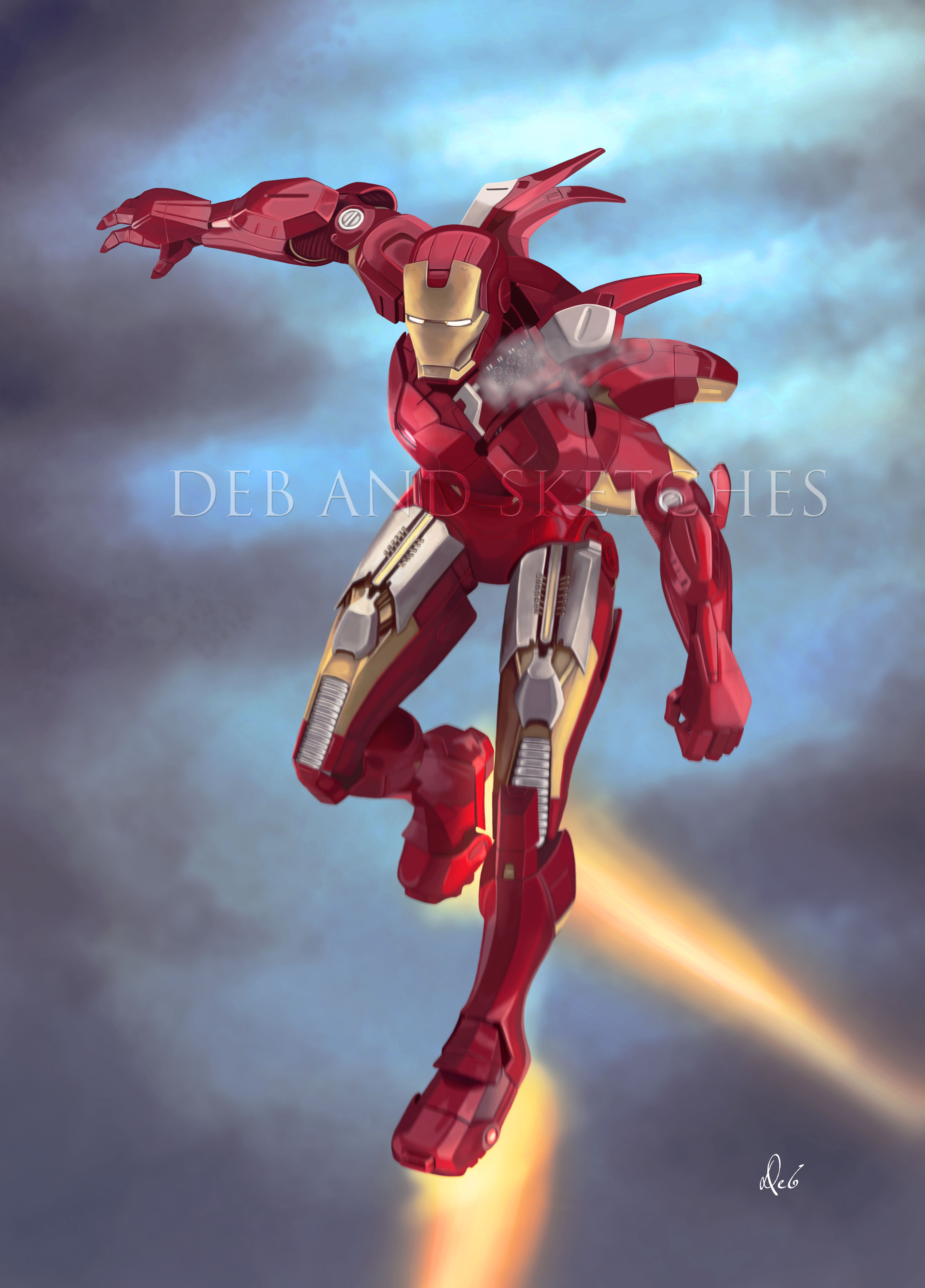 Here is an illustration on the super hero Marve,l Iron Man, in one of his many armors!
