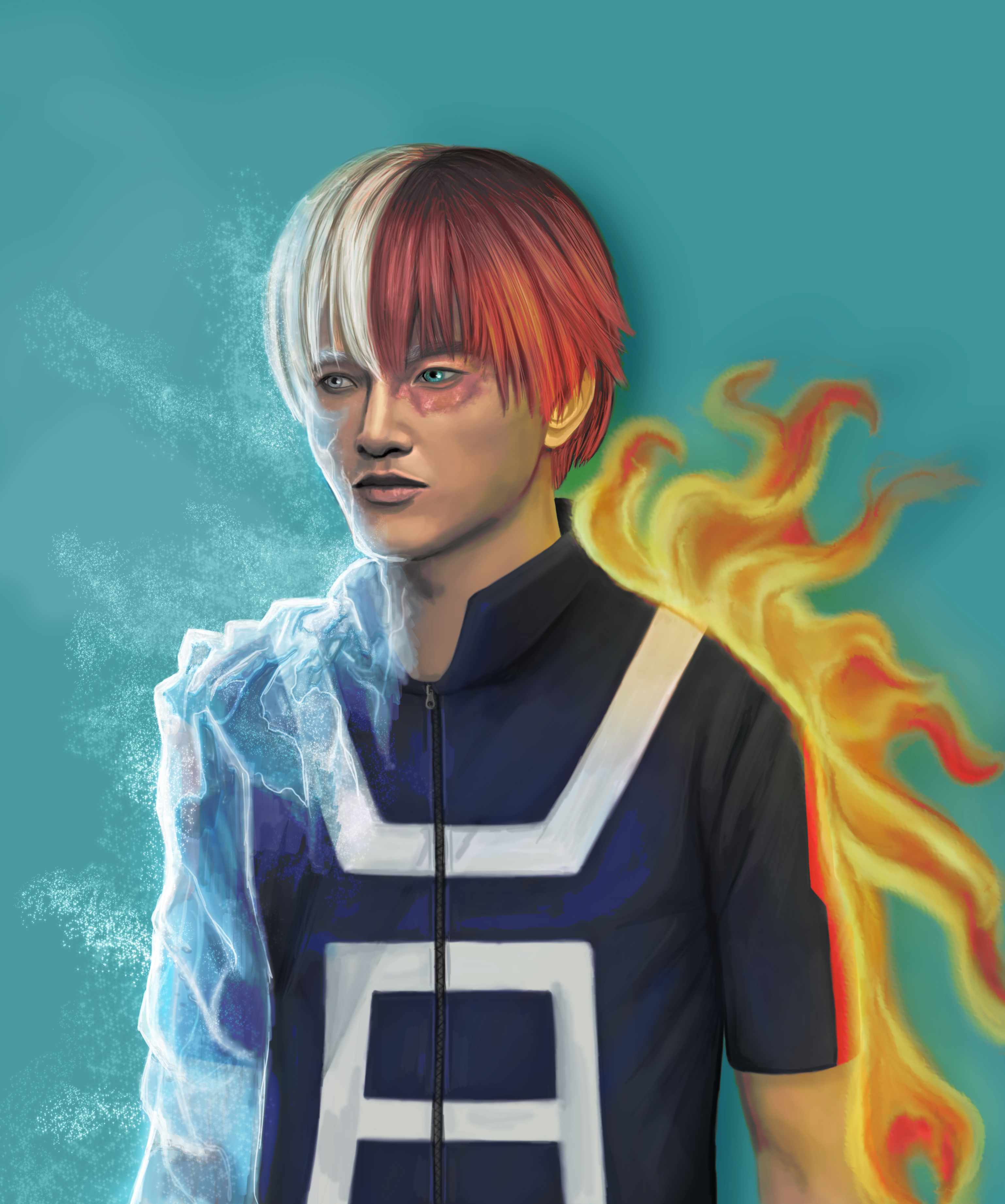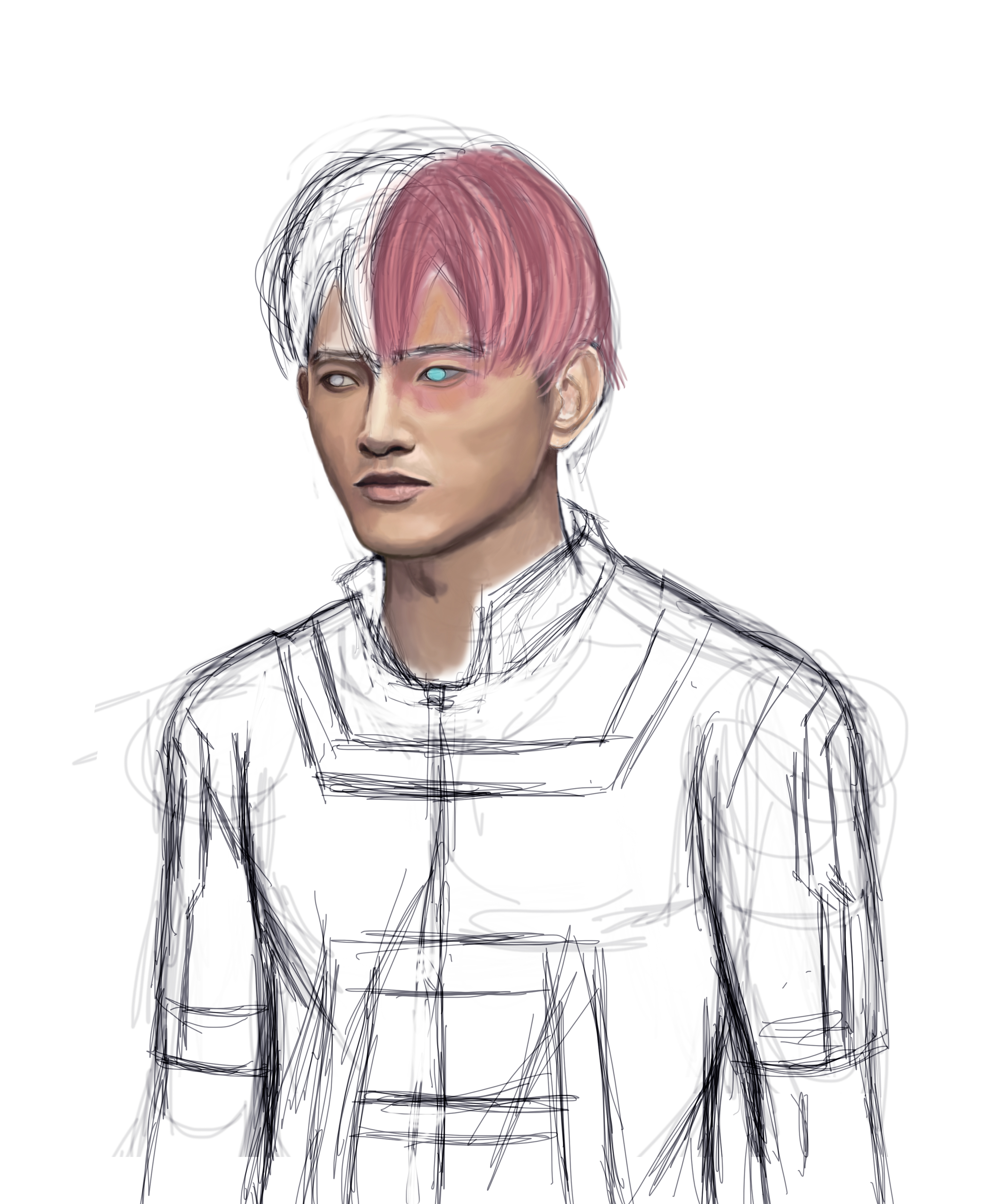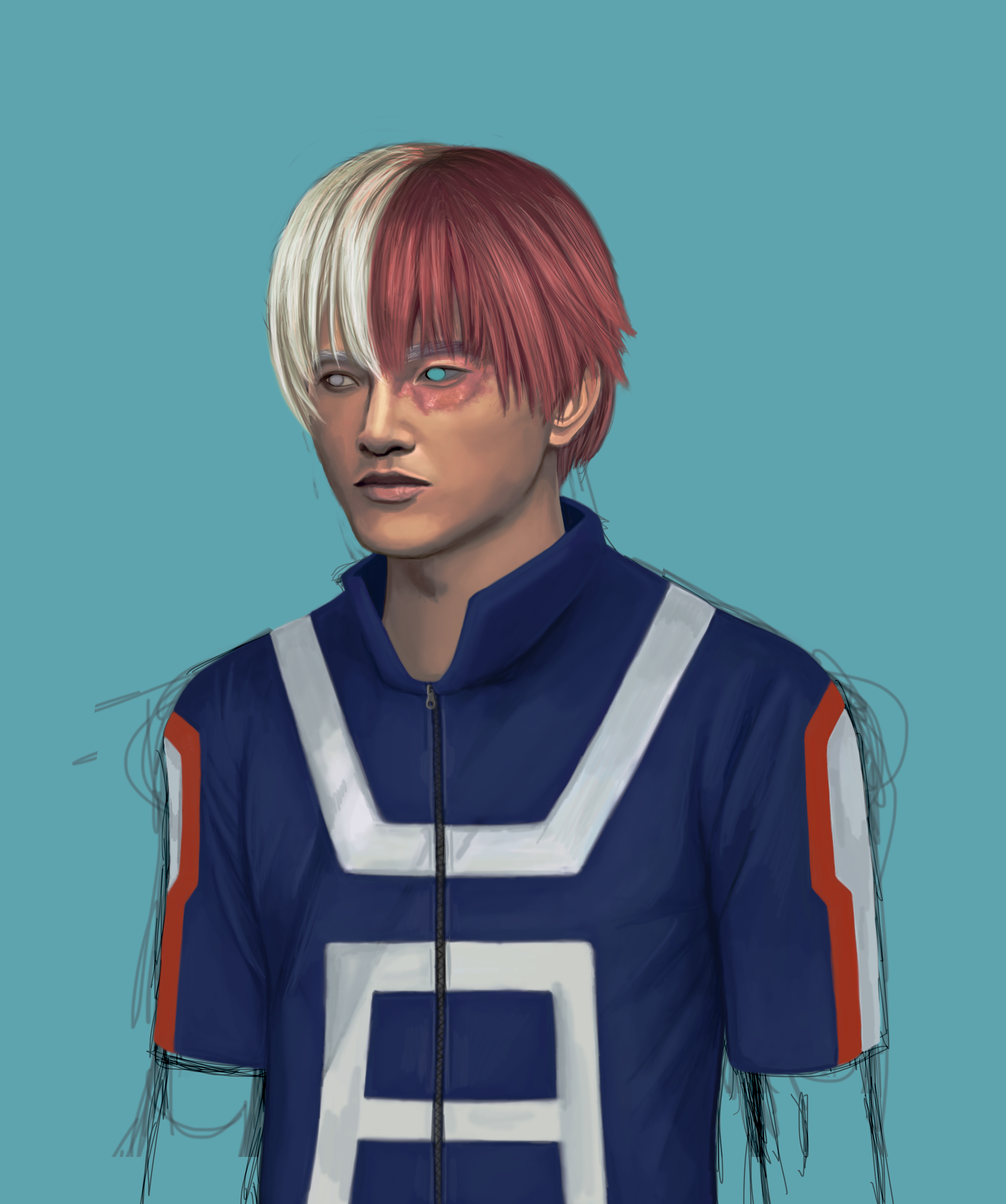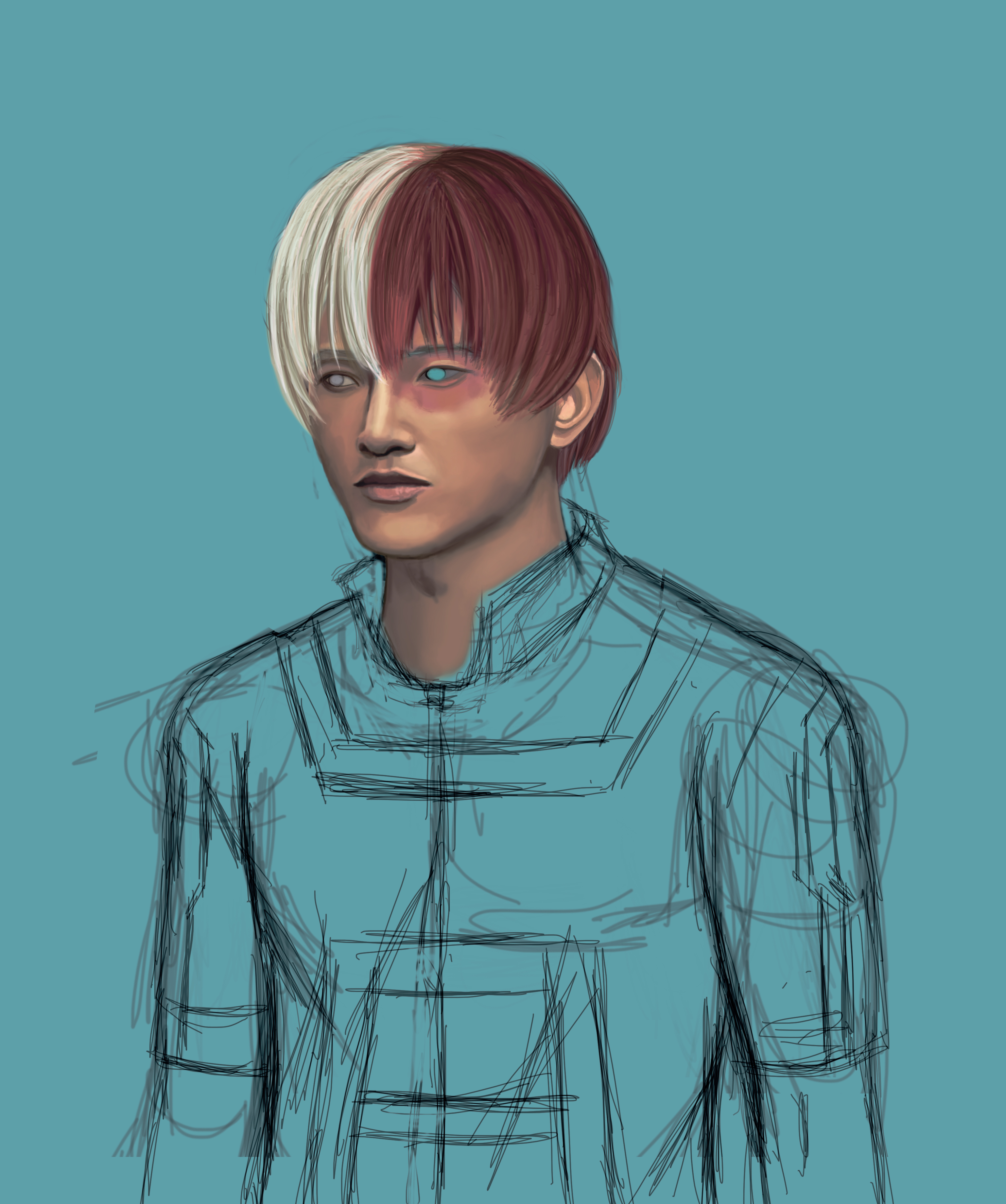 A fan-art drawing on the manga Boku no hero academia, with the character of Shoto Todoroki :)