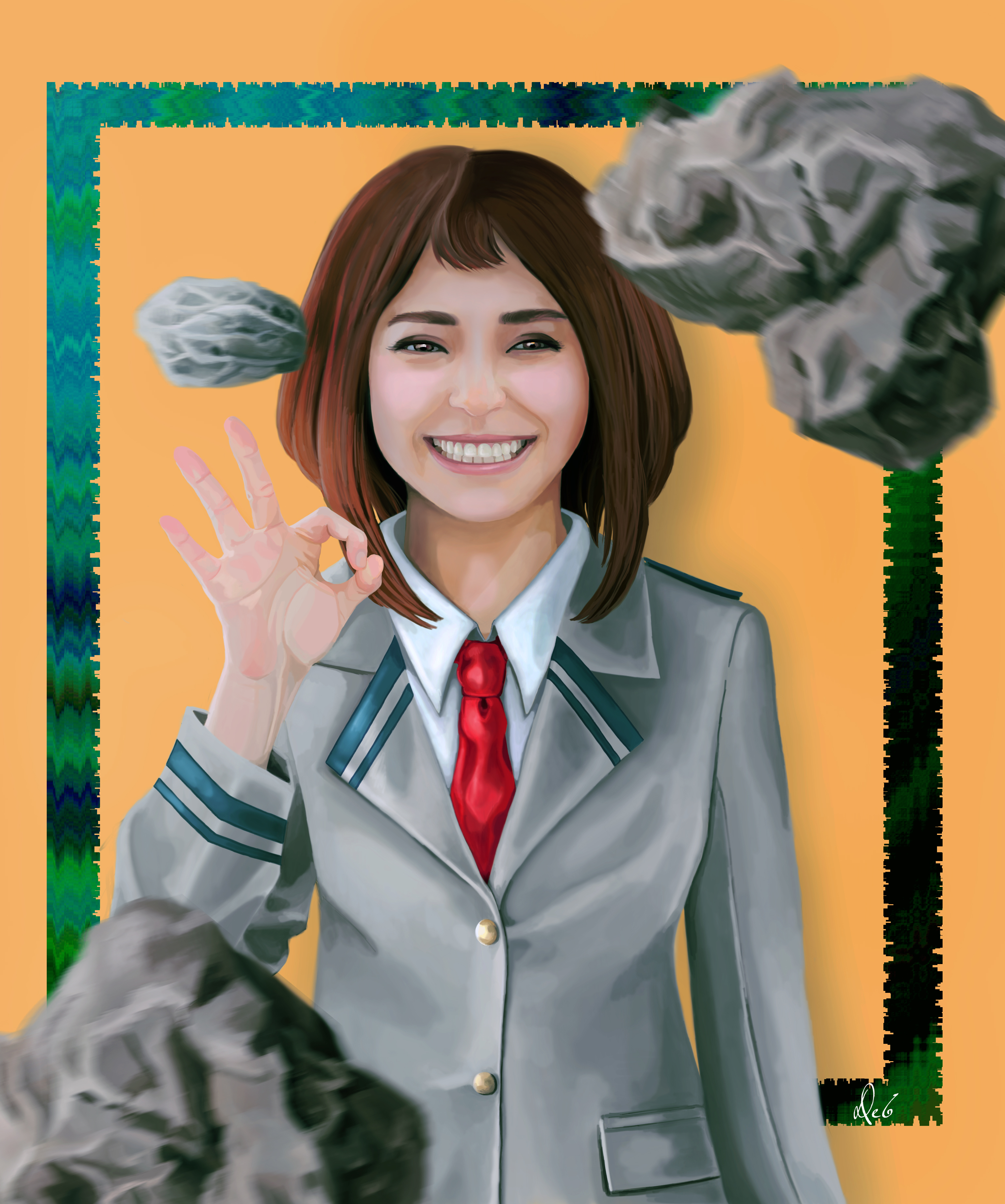 The other drawings on the same manga with the characters Fumikage Tokoyami, Ochaco Uraraka and Tsuyu Asui