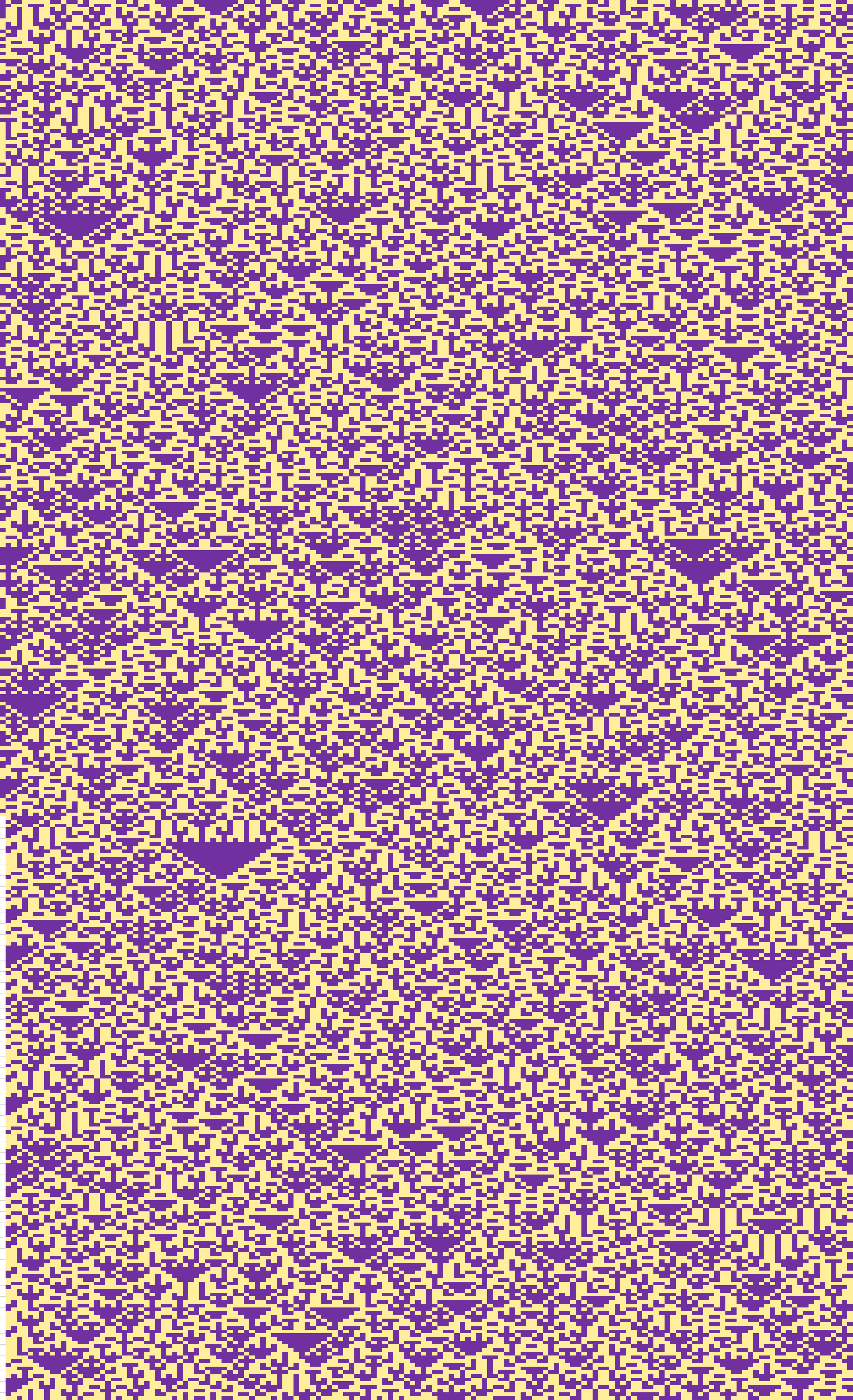 As I have explored the Cellular Automata phenomenon (see previous posts), I have tried to quantify the variability of their outputs, their periodicity via graphs. Some of these have turned out to be quite aesthetically pleasing in addition to elucidating the richness of CA versatility.