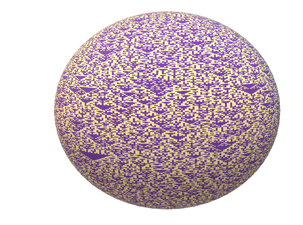 The one below is "Rule 90" CA - the short version and then a few variations - projections onto a torus and a sphere.