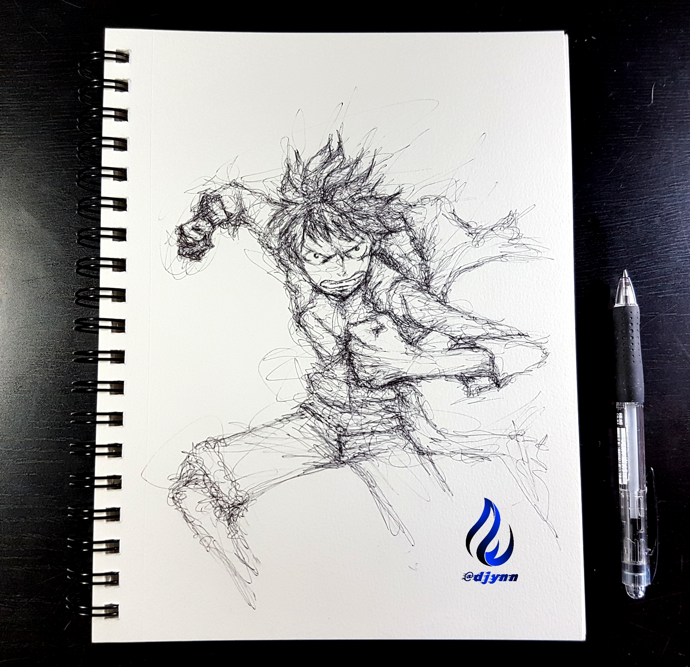 this is really amazing. I love luffy(and one piece) and I definitely wanna learn to scribble this really good..