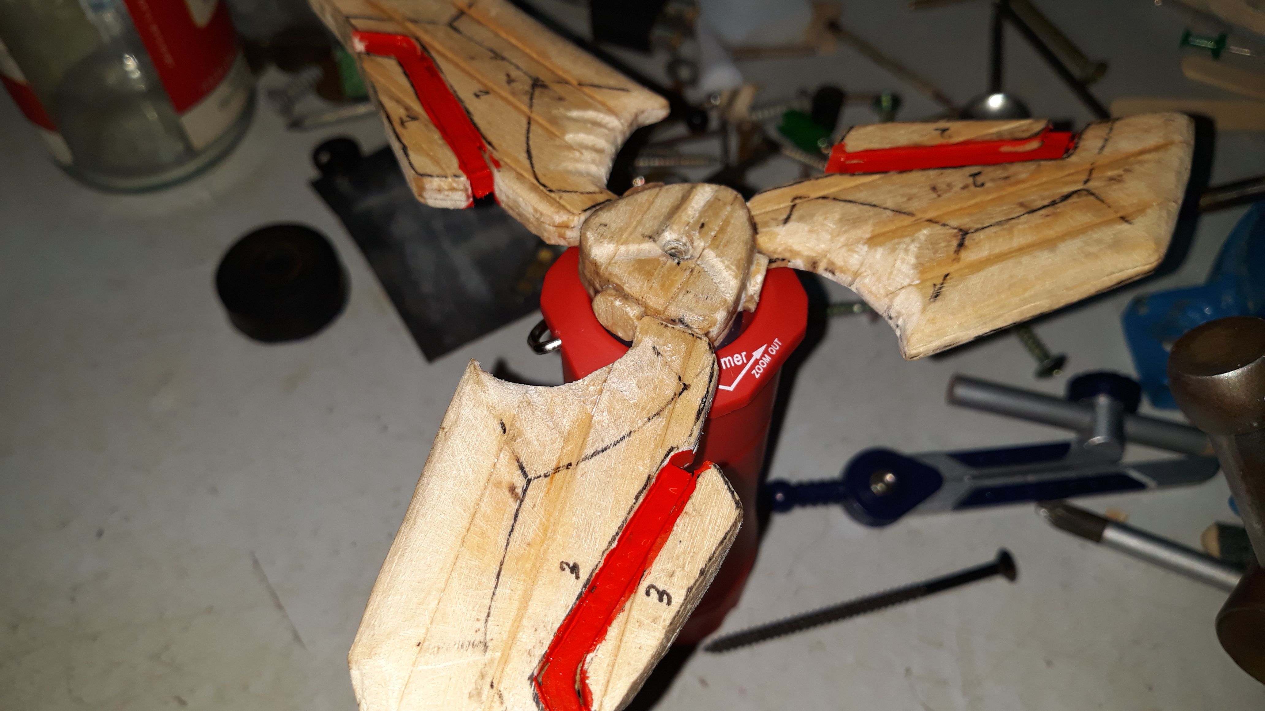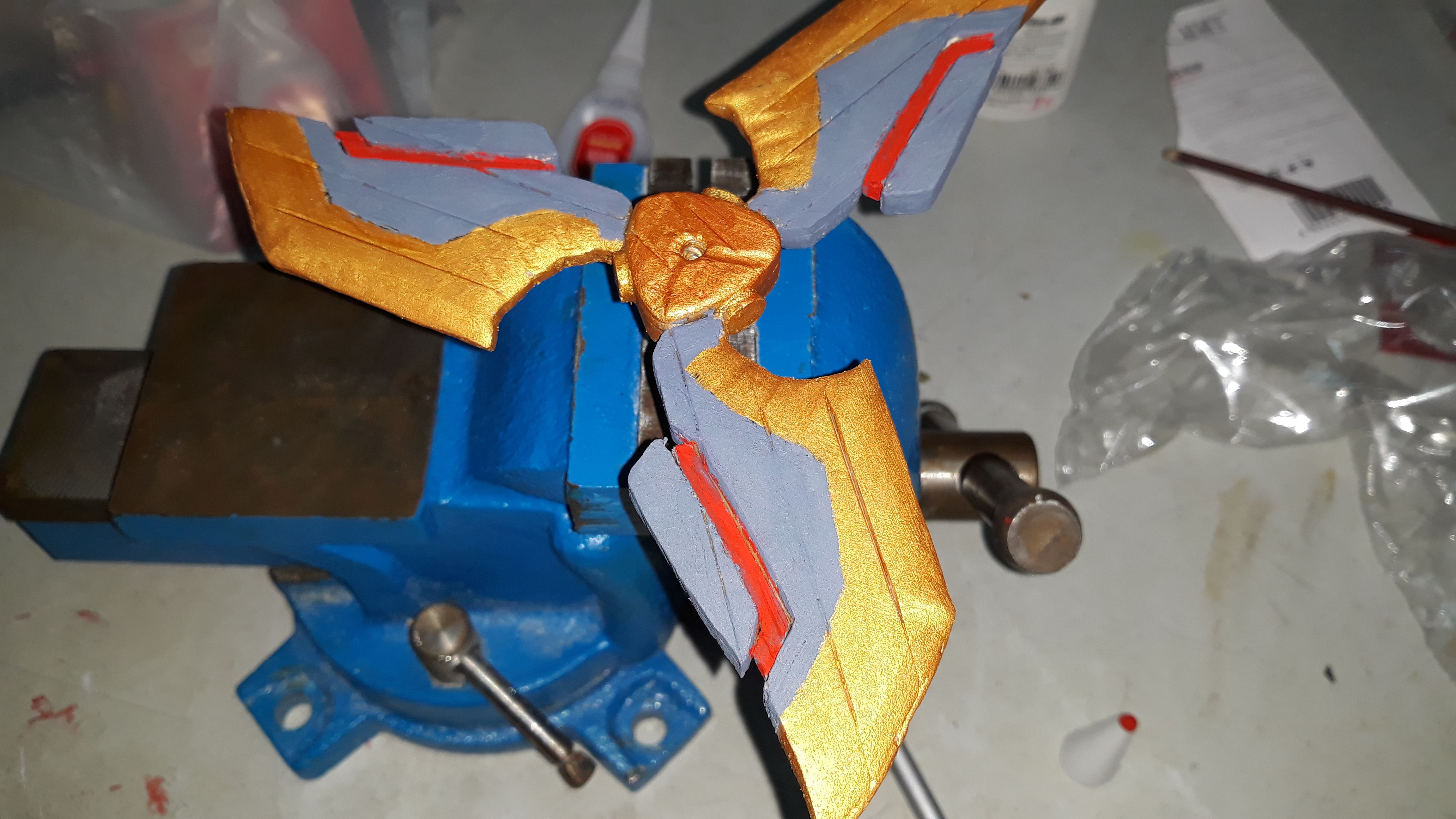 And then, I glued the blades to the middle piece. At this point I knew I made the right decision making this. I felt the relief of making something that took a little less than a week.