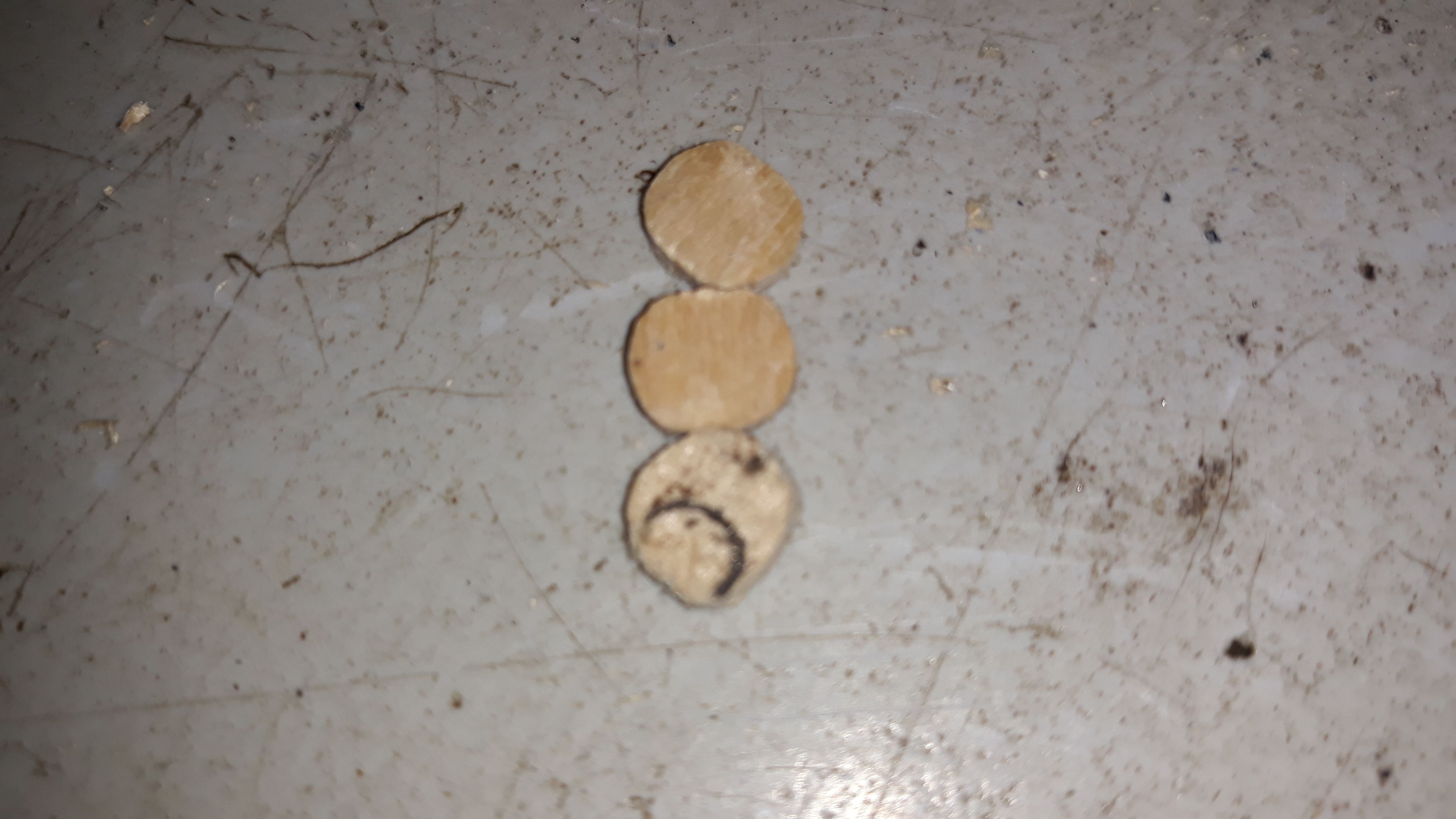 So first, I wanna get the hole in the middle piece done. I was gonna use a drill to speed up the process but unfortunately, I broke the drill bit on a test piece.