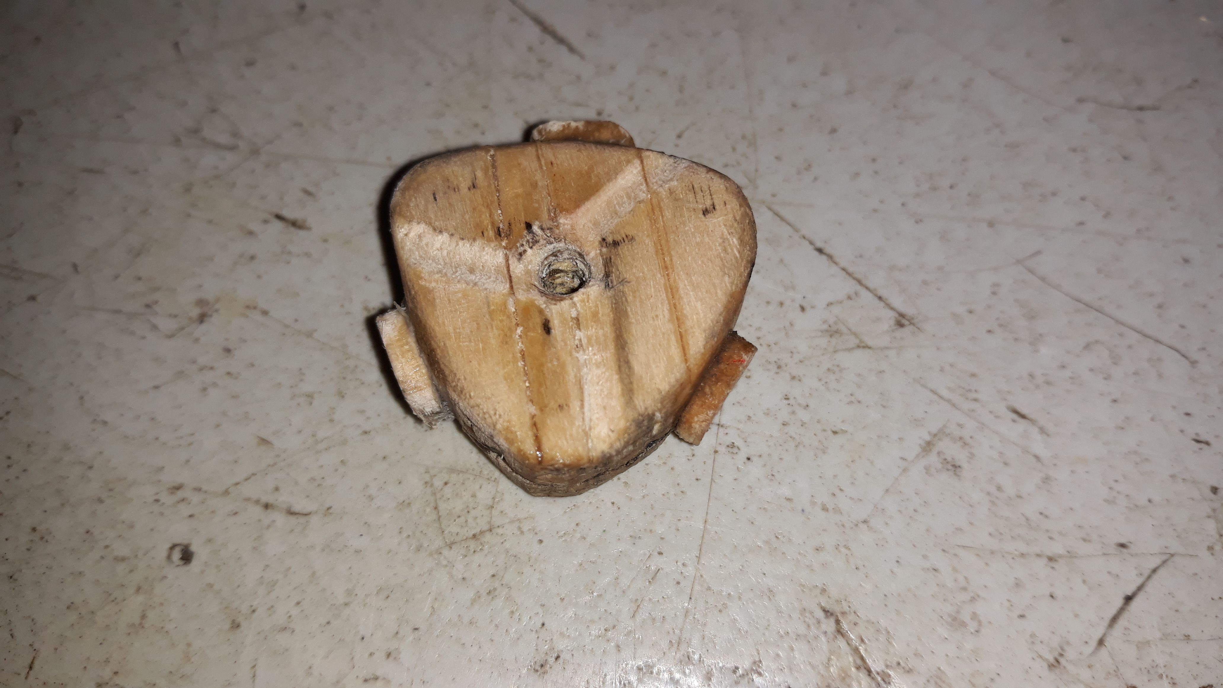 Then, using a decently long screw attached to a popsicle stick, I created the dents on the middle piece. I did it on both sides.