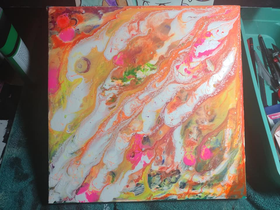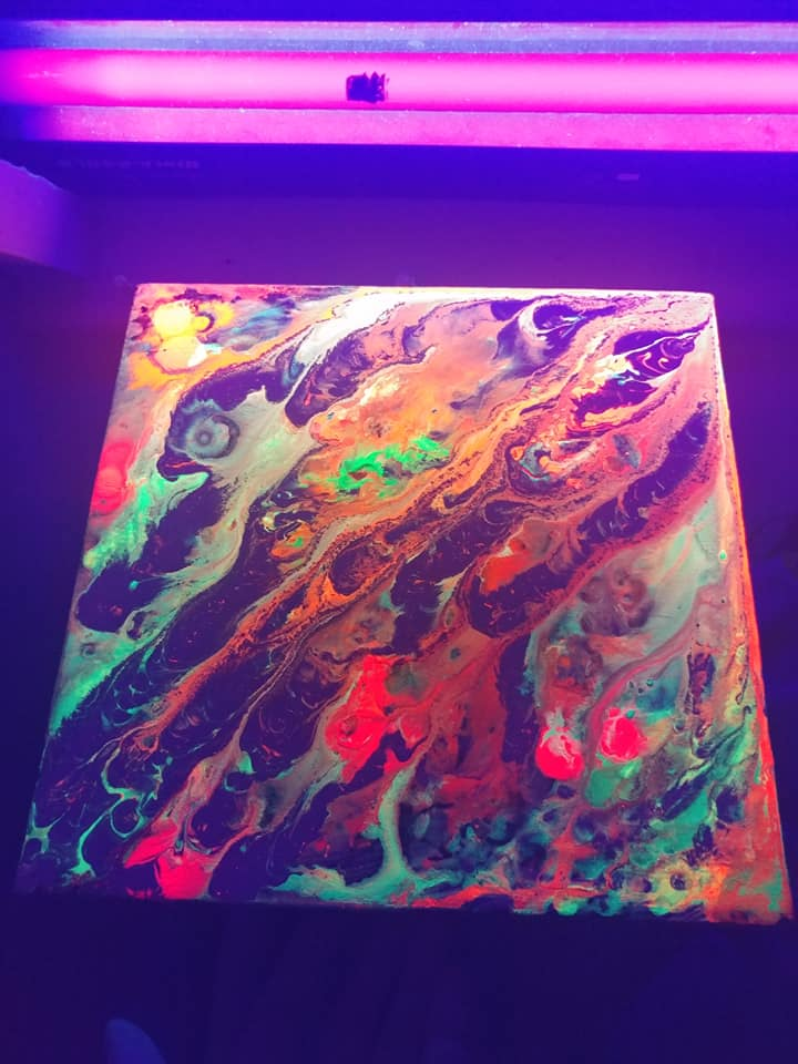 Giving away a 9x12 original illustration and a 12x12 UV reactive /glow in the dark pour painting on canvas.