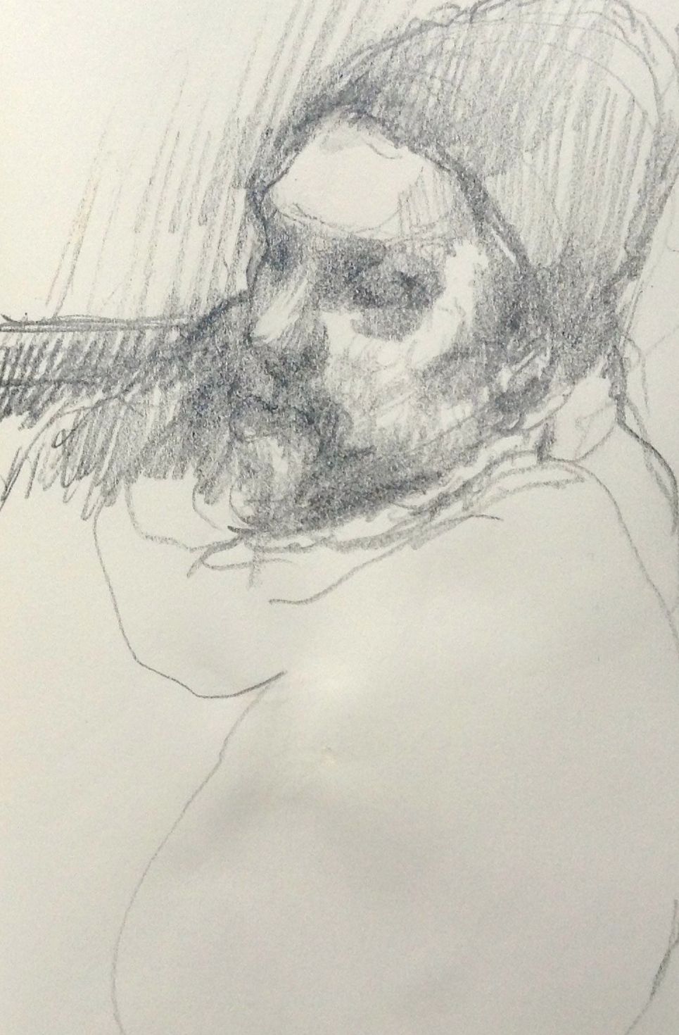 It is mine and so is the subject. It's my husband, Chris. As I write this he is still on the sofa reading and I am still at the kitchen table where I drew him.