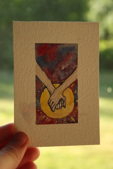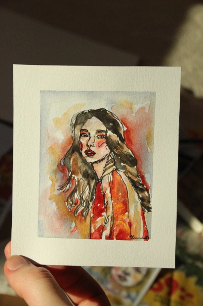 Small paintings = fast to make = instant gratification. Fun. And it's so nice to use tape and get the precise clean edges when peeling it off. I've been thinking about selling some art as well, and so it's easier when it's small cheap things that anyone could buy. Or maybe I just get so impatient using watercolours that I don't want to make it bigger. It's not like size matters anyways, I mean have you seen Mona Lisa?