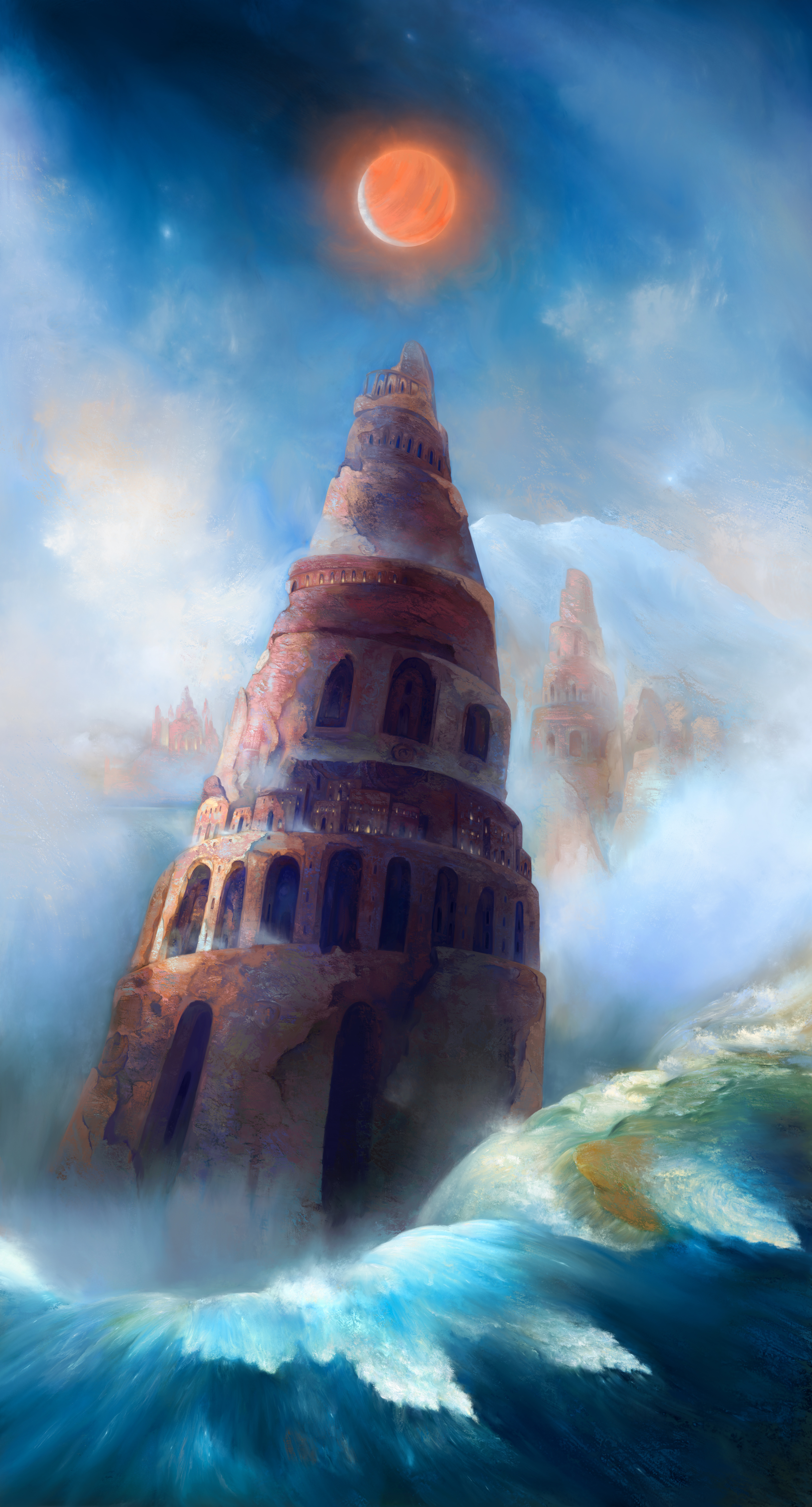 The Leaning Towerekaterinya (27)in #art • 8 years ago (edited)Concept art of an ancient leaning tower by an alien waterfall on a planet in orbit around a Brown Dwarf. #illustration #painting #digitalart #conceptart
