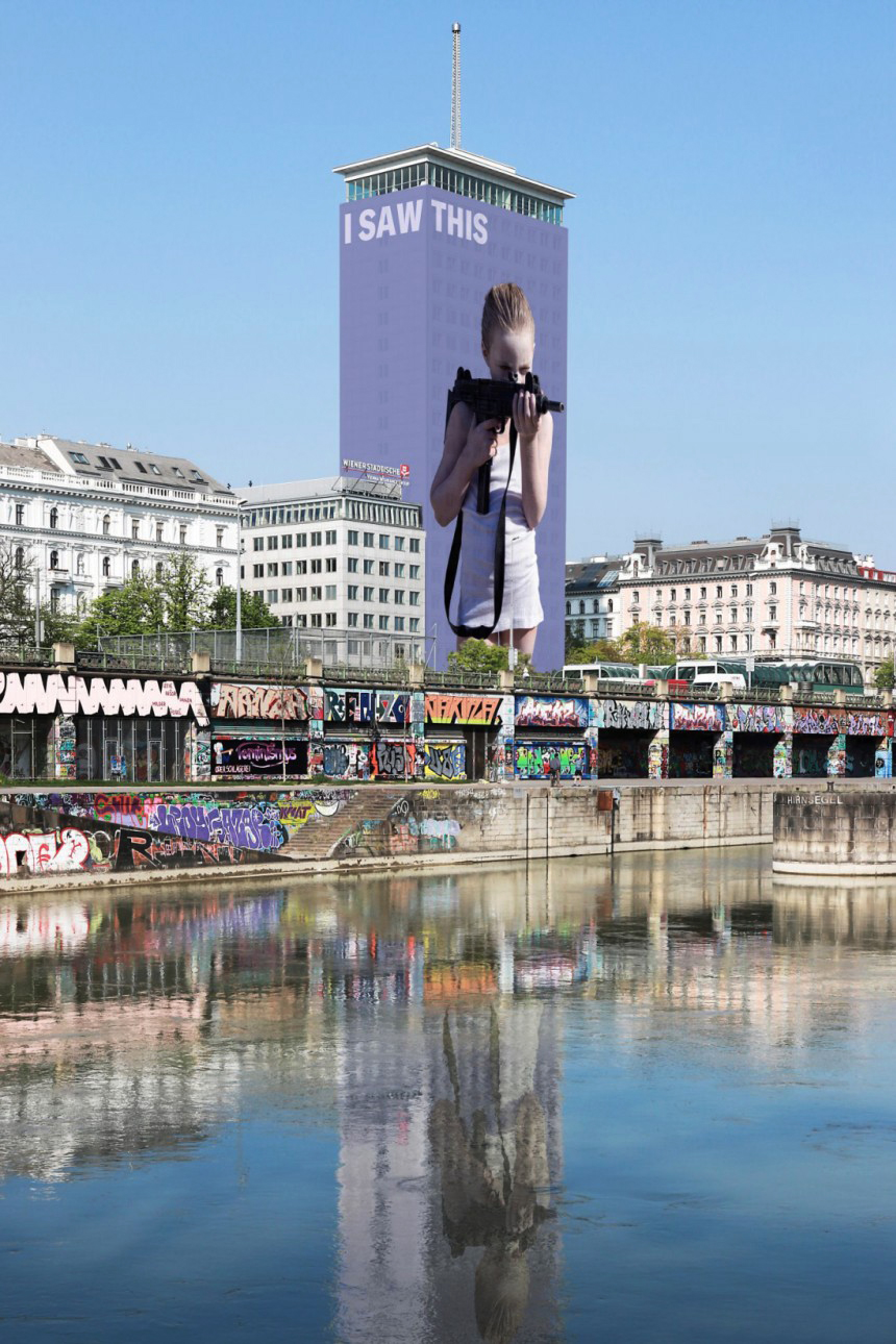 Gottfried Helnwein "Gottfried Helnwein y su Canto de la Aurora", Interview with Sandra Cerisola, Esquire, Latinoamerica, October 16, 2012I SAW THIS, Installation Gottfried Helnwein, Ringturm, Vienna, 2018