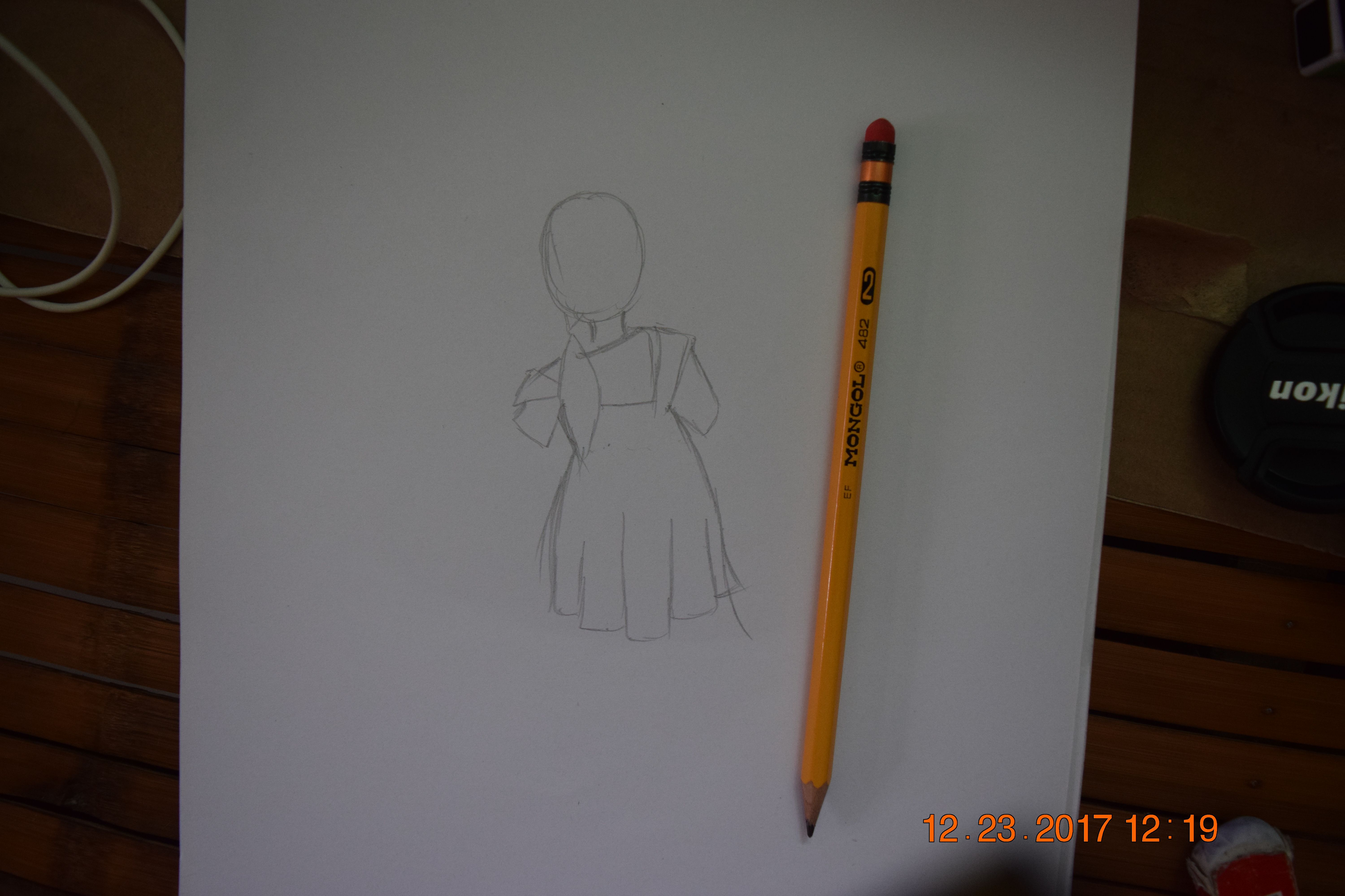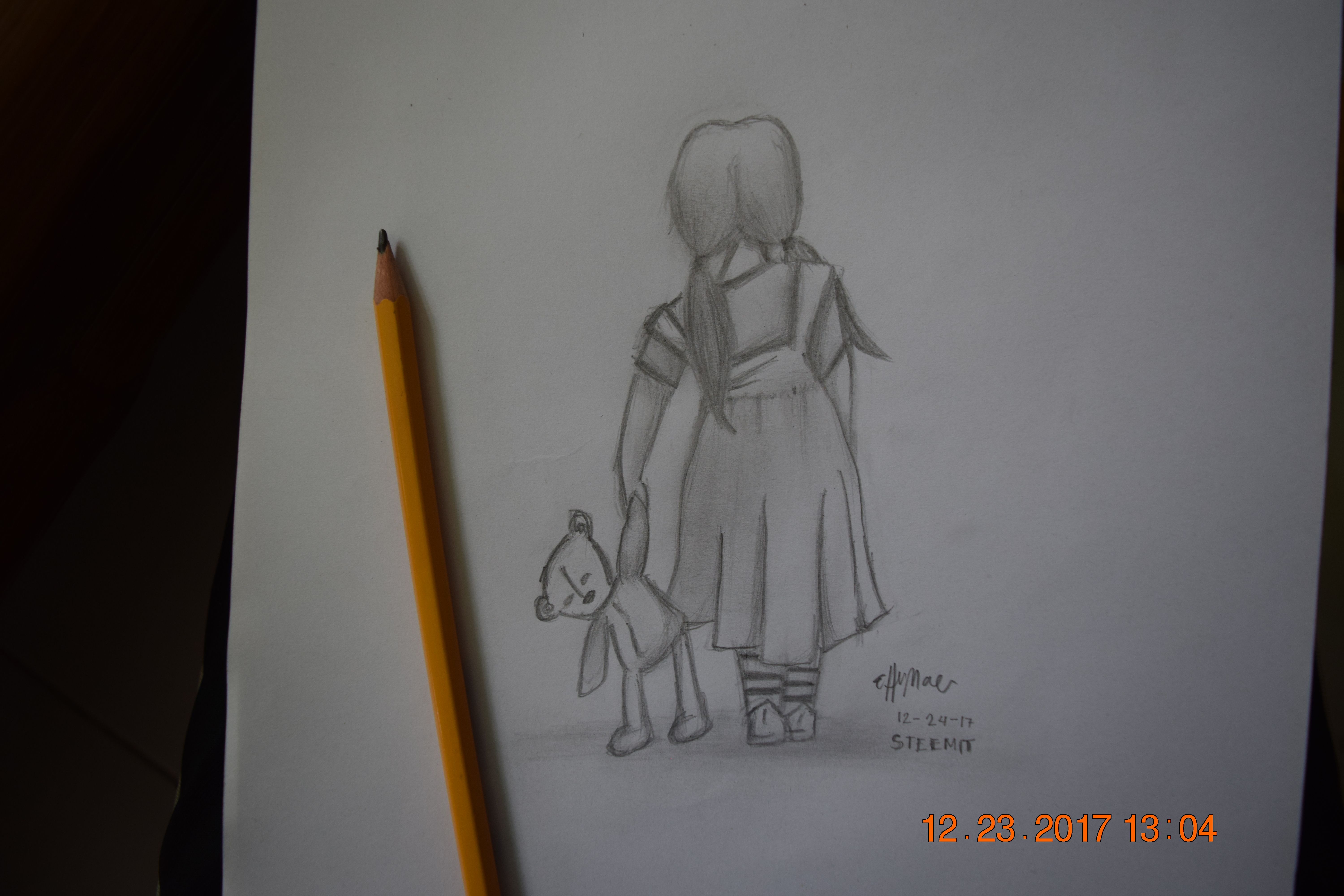 It's a simple drawing of a little girl's back.