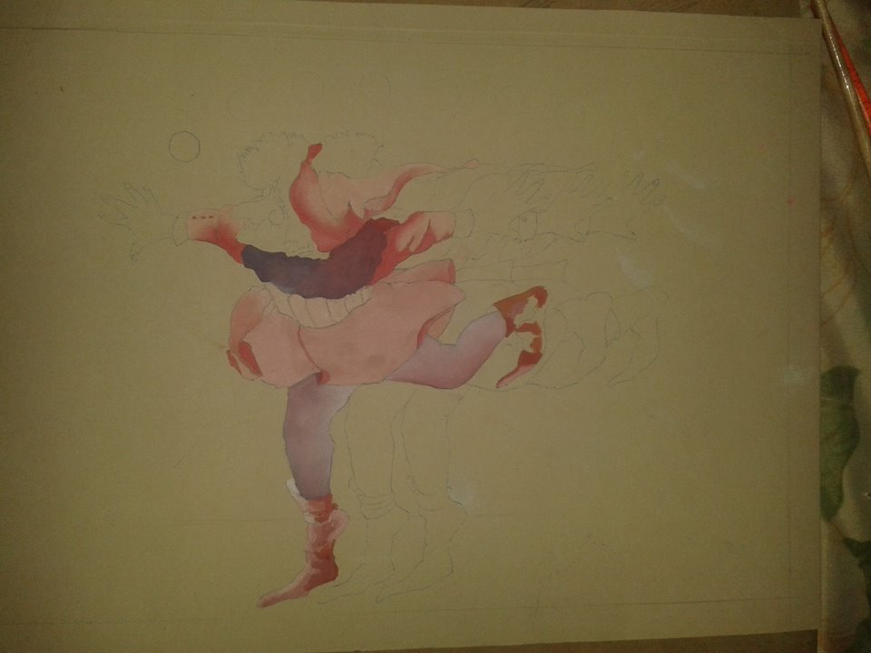 In this last step, I give a little more atmosphere and accentuate the background with another wash.