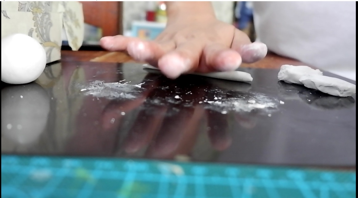 You can see in the left corner the ball-shaped right? Now let's make some strips out of paper clay as well and this will serve as the circula-like patterns of the devil fruit.