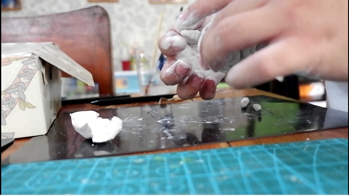 Get some enough amount of paper clay knead it first for some time(it's very important) and then mold it into a ball-shaped figure using both hands or palms to be precise. It will serve as the base for our Gomu Gomu No Mi. Oh another important factors to consider is that paper clay is like a cement which is easy to dry which hardens pretty quick, and for that very reason you need to apply some water on it.