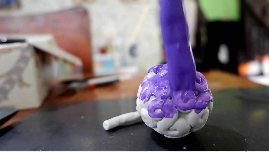 Now create the stem part of the devil fruit, I used some tiny wires as the base of it for it to hold the paper clay while its still not hard to hold its own.