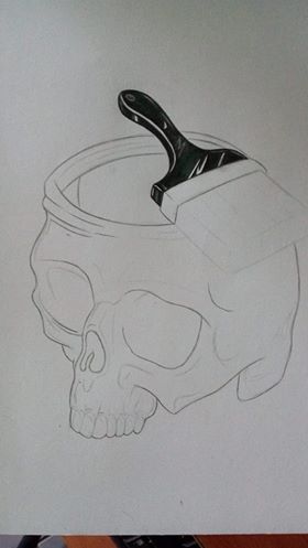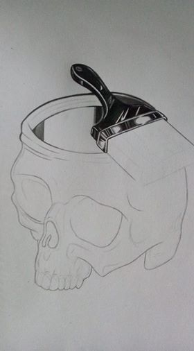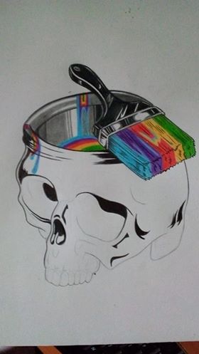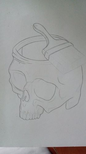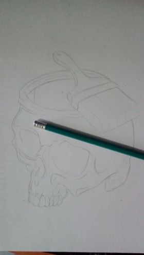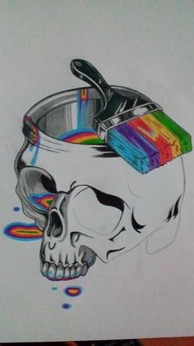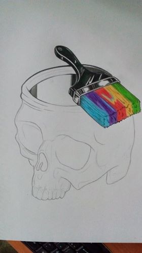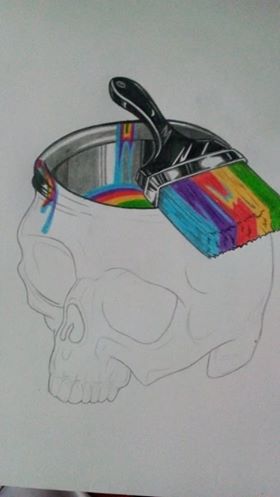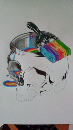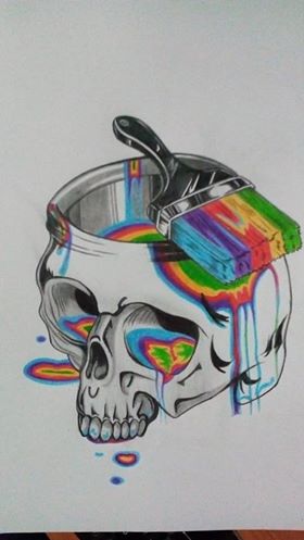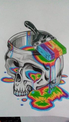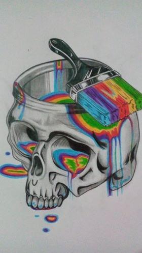 11. From the brush a lot of colors descend along the skull: