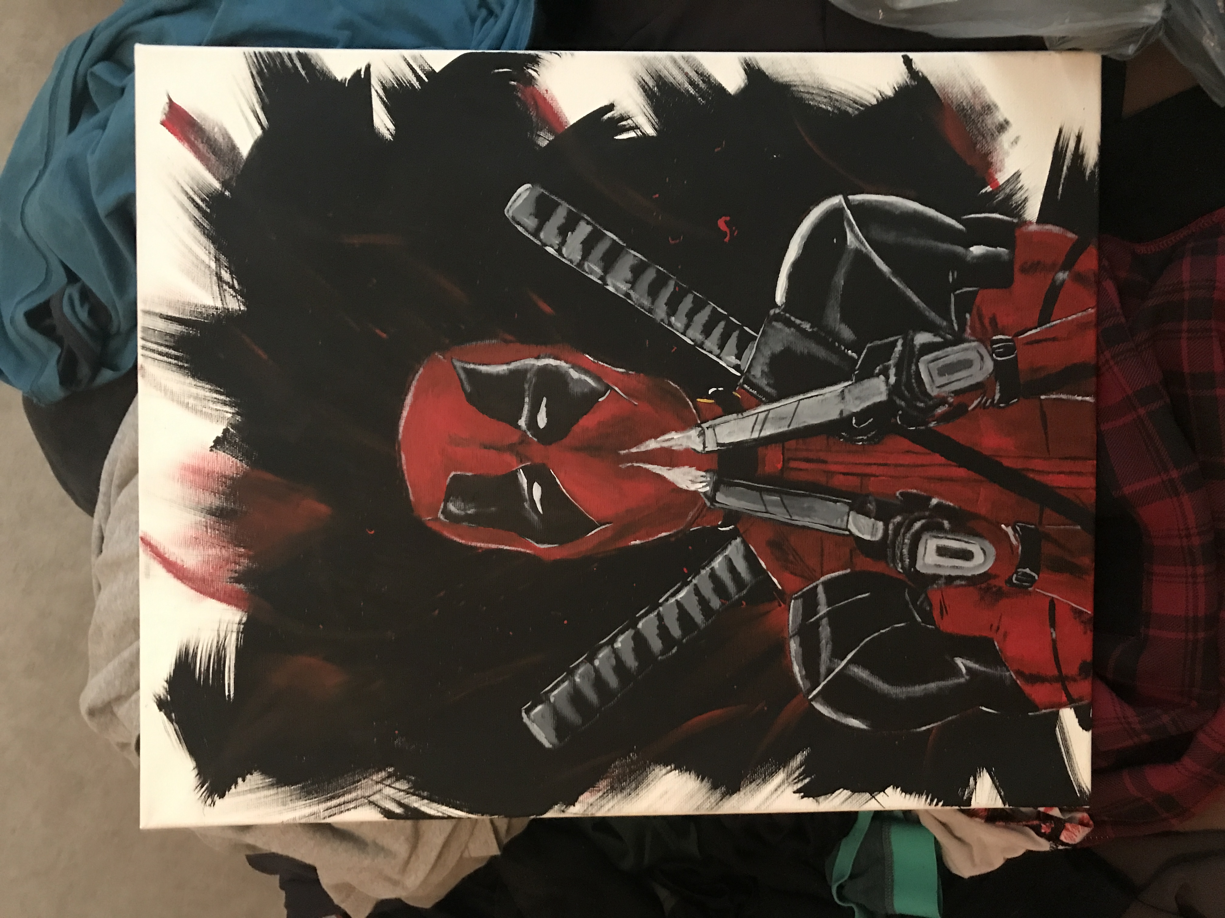 Mr deadpoolfailedpaintings (54)in #art • 7 years ago Fun quick painting of my hero.... anti-hero? Neighbourhood pool guy #painting #steemit #fun #comics