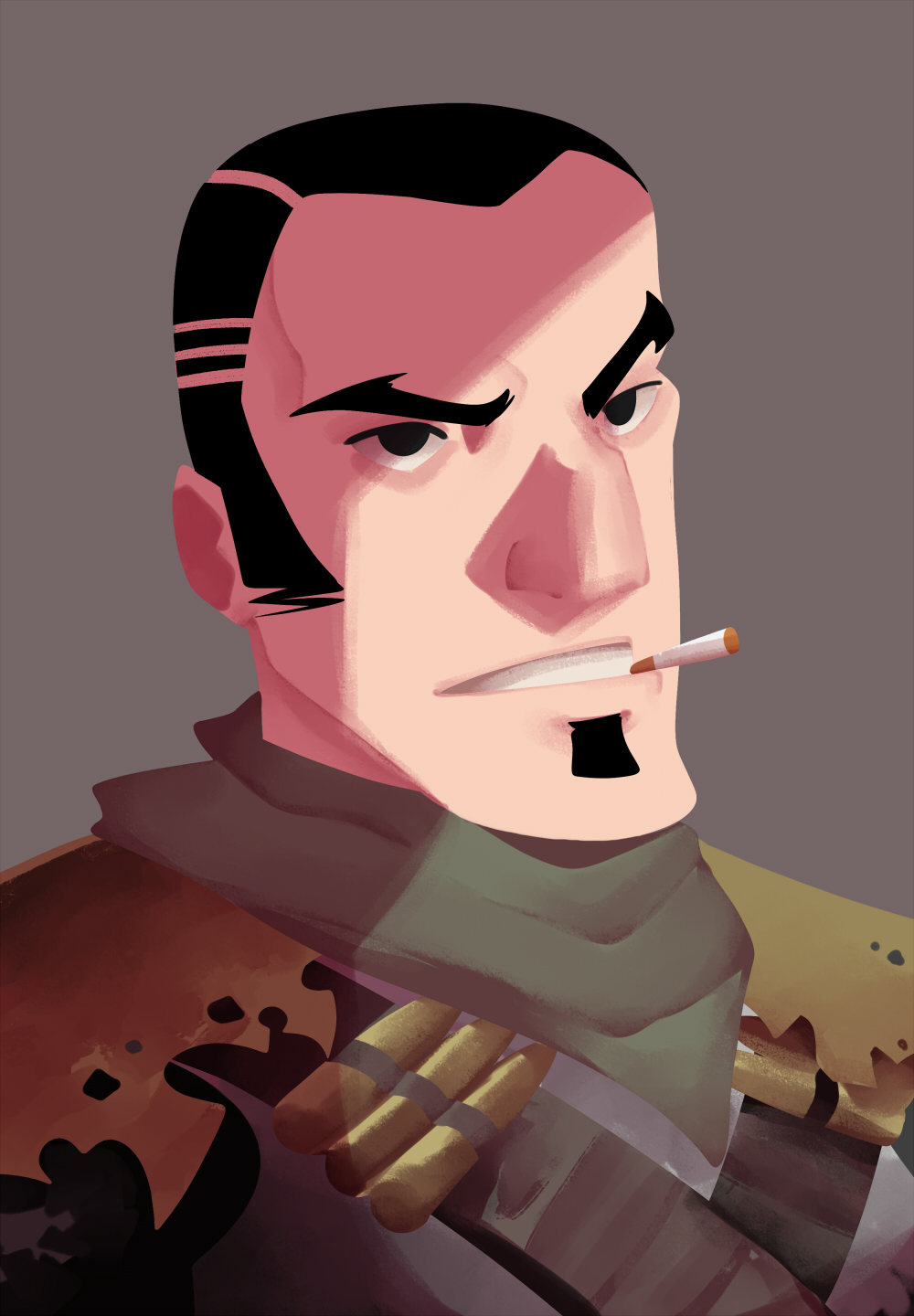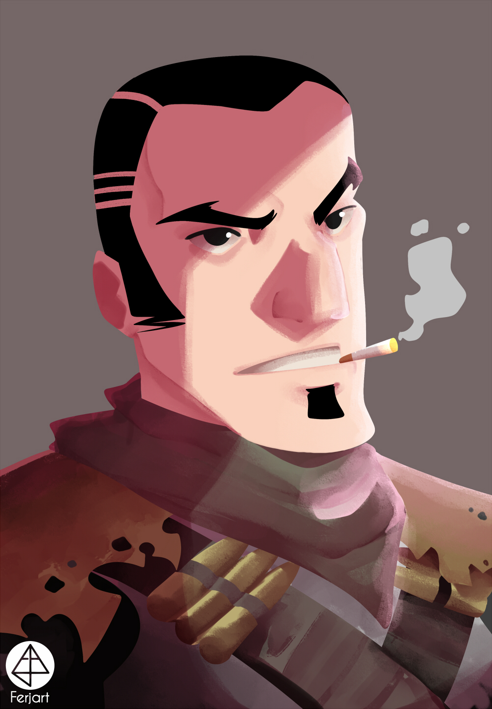 He looks like he is a seasoned soldier, for sure ! Nice drawing, @ferjart :)