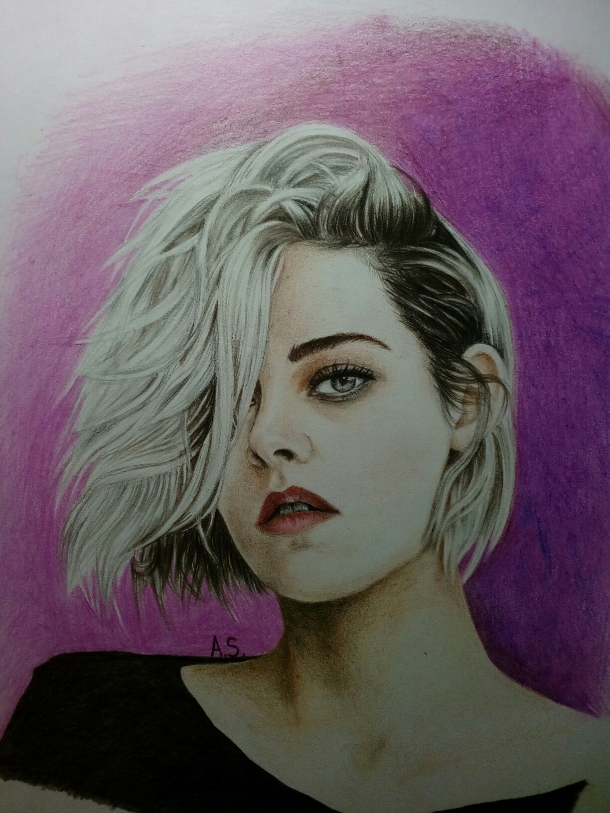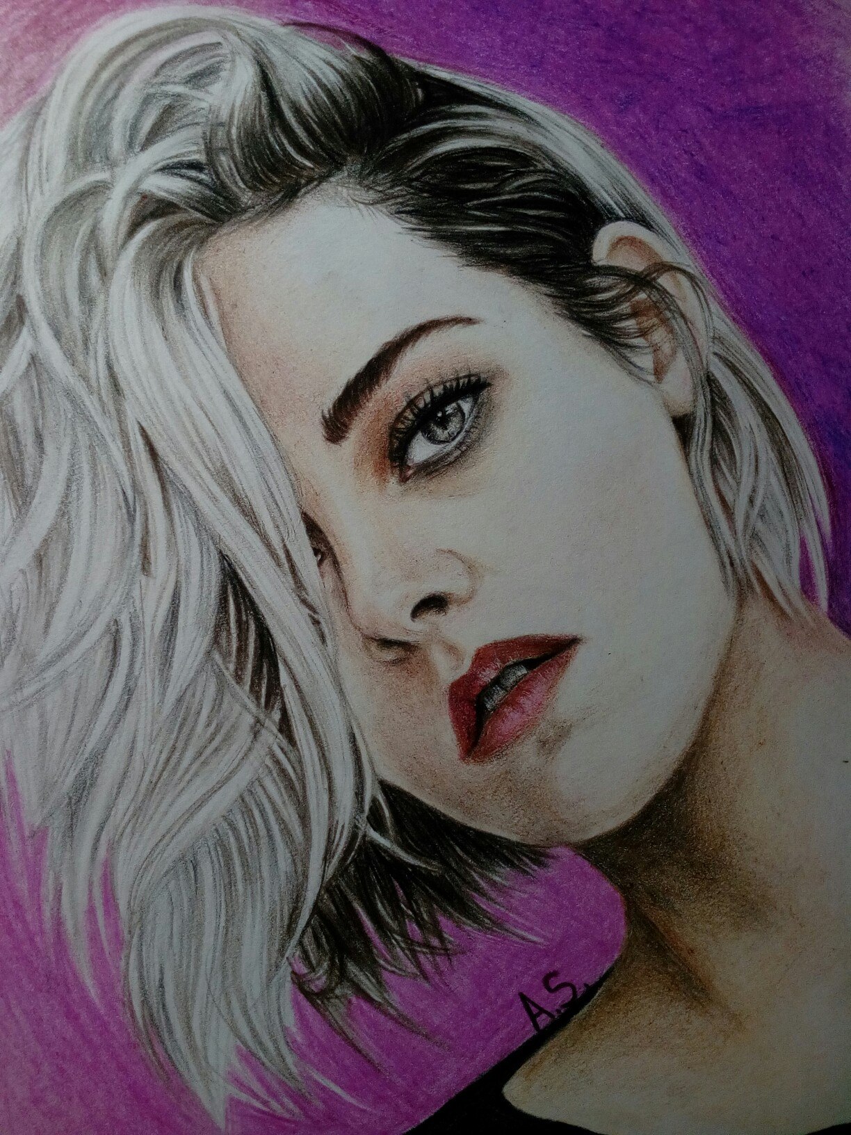 Portrait of Kristen Stewart. I want to hold a competition. The winner will receive a PORTRAIT. LOOK.