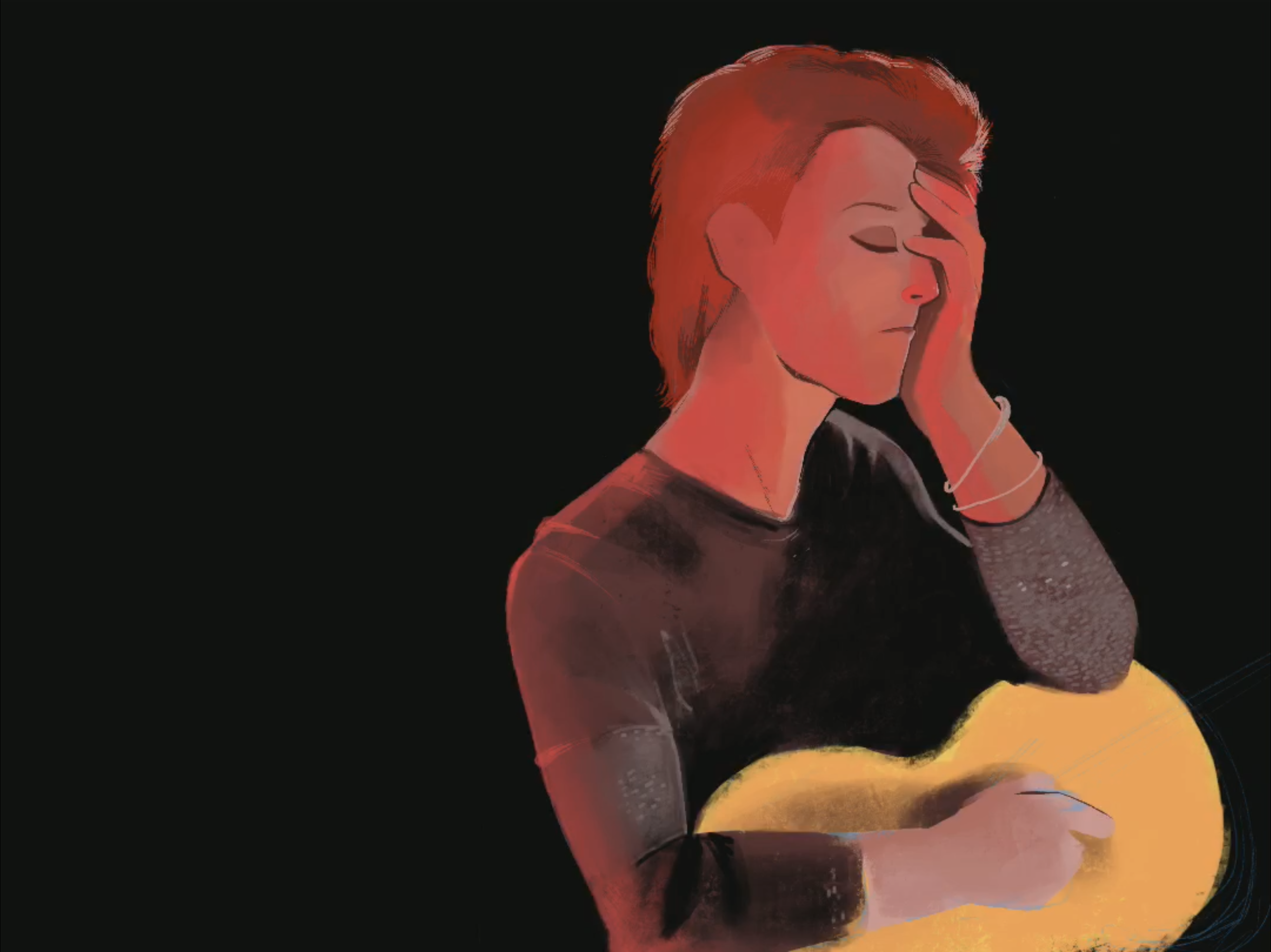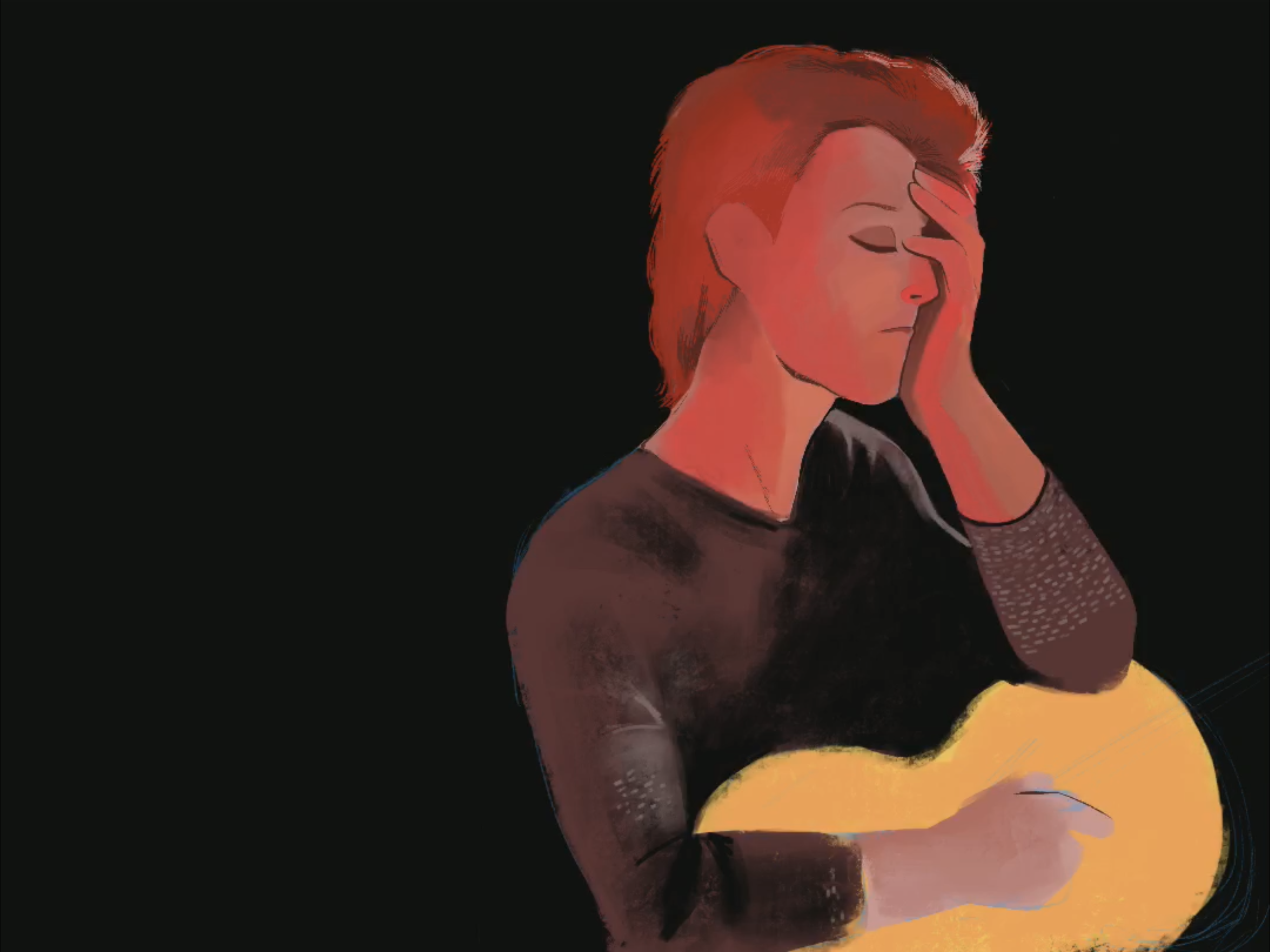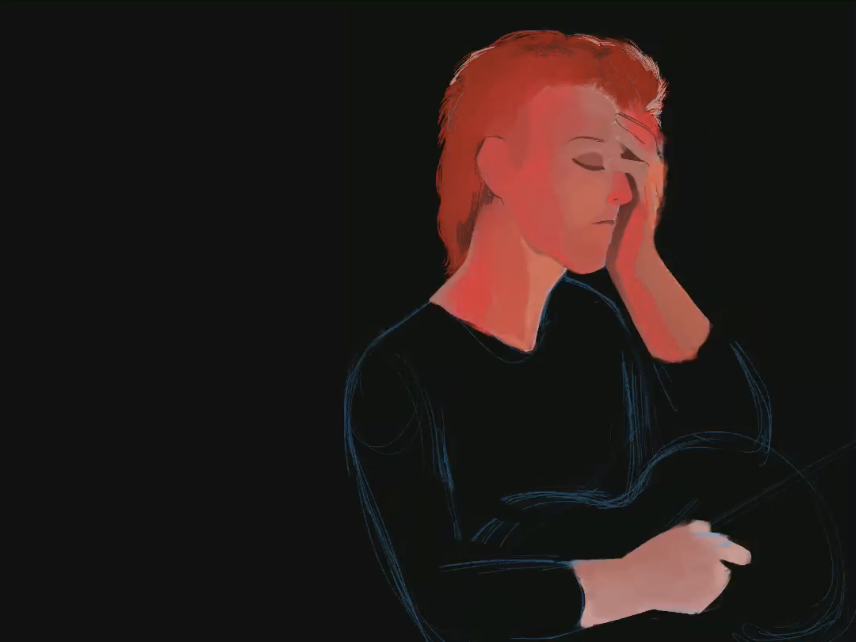 For this illustration I studied the photography of the music video: Space Oddity. Since it is one of my favorite songs, I tried to recreate one of the frames, personally for study purposes. The method is based mostly on oil or gouache painting. Take a look on how I did it below: