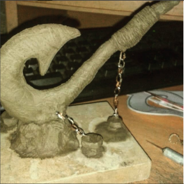 no tome fotos al proceso de esculpido pero este es el resultadoEsta escultura para mi simboliza la valentía y la fuerza que debe tener Maui o cualquier otro ser que desee portar dicha arma, deberá demostrarlo arrancándola de su prisión, como lo hizo el Rey Arturo con su espada Excalibur o el mismo Thor con su Mjolnir cuando fue desterrado de Asgard